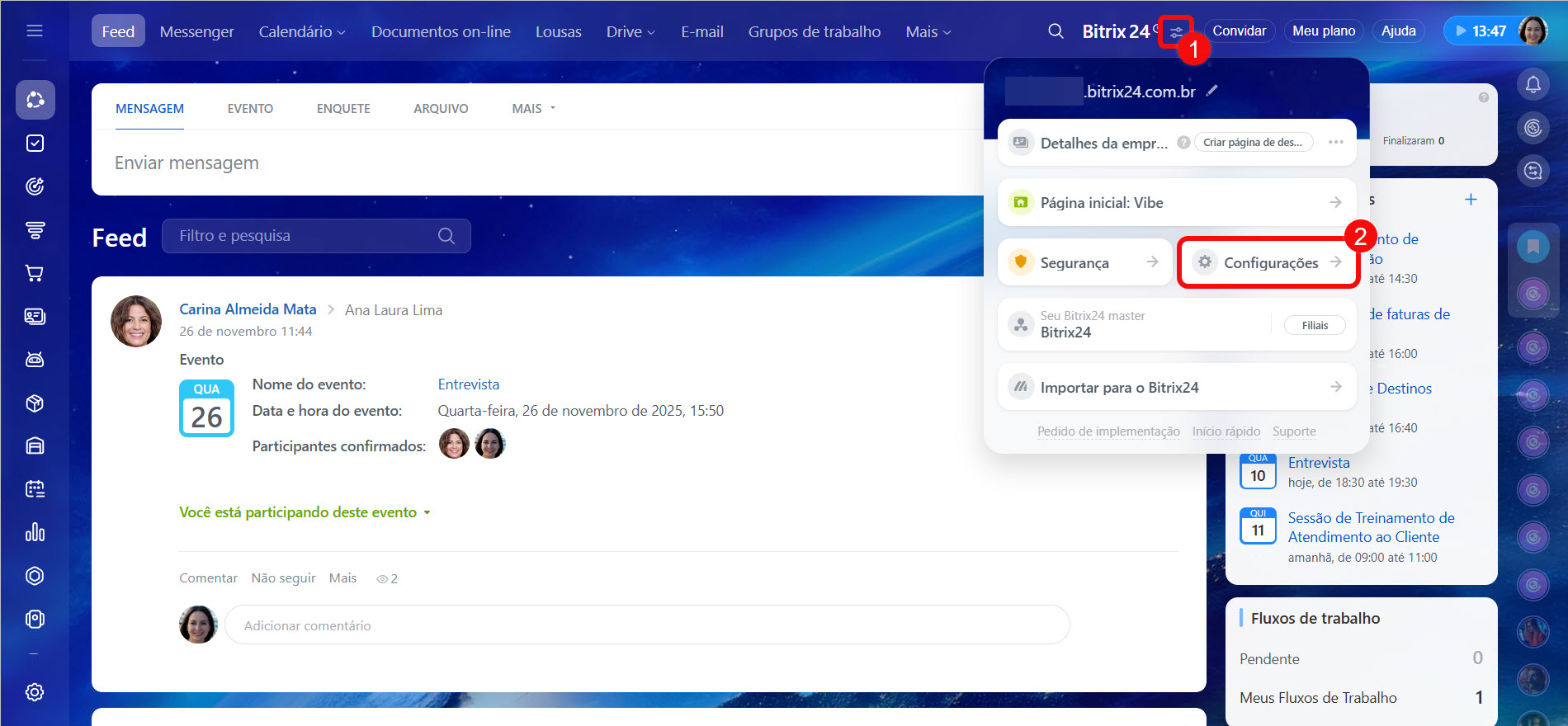- No aplicativo Bitrix24 Messenger para computador, clique no ícone