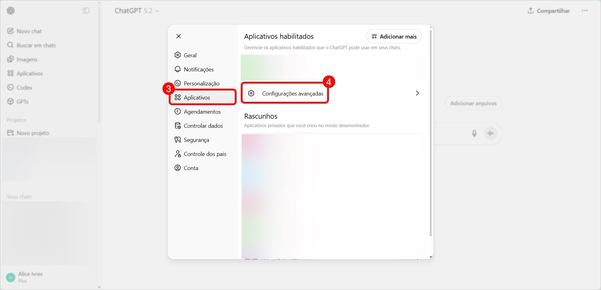 1–2. Abra a seção Aplicativos > Conexões MCP.