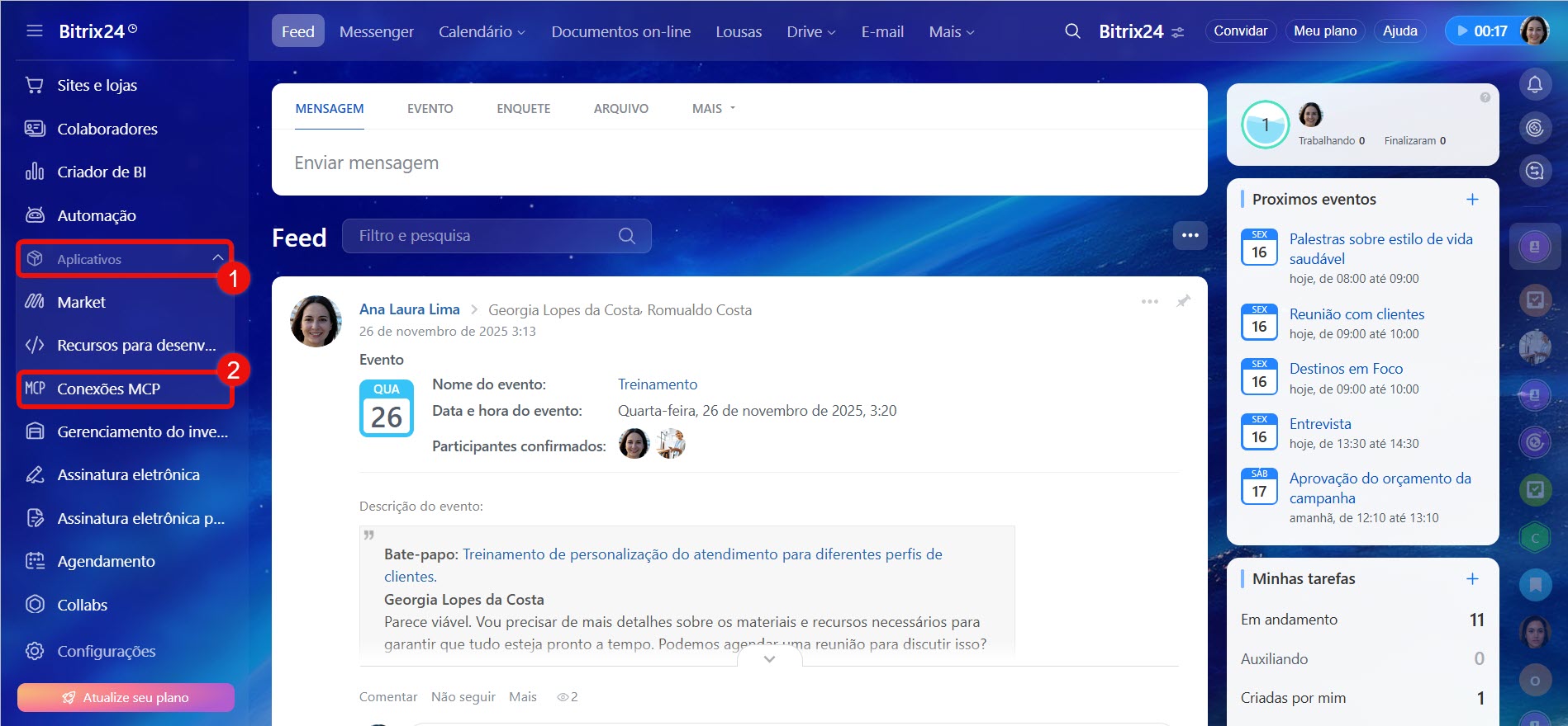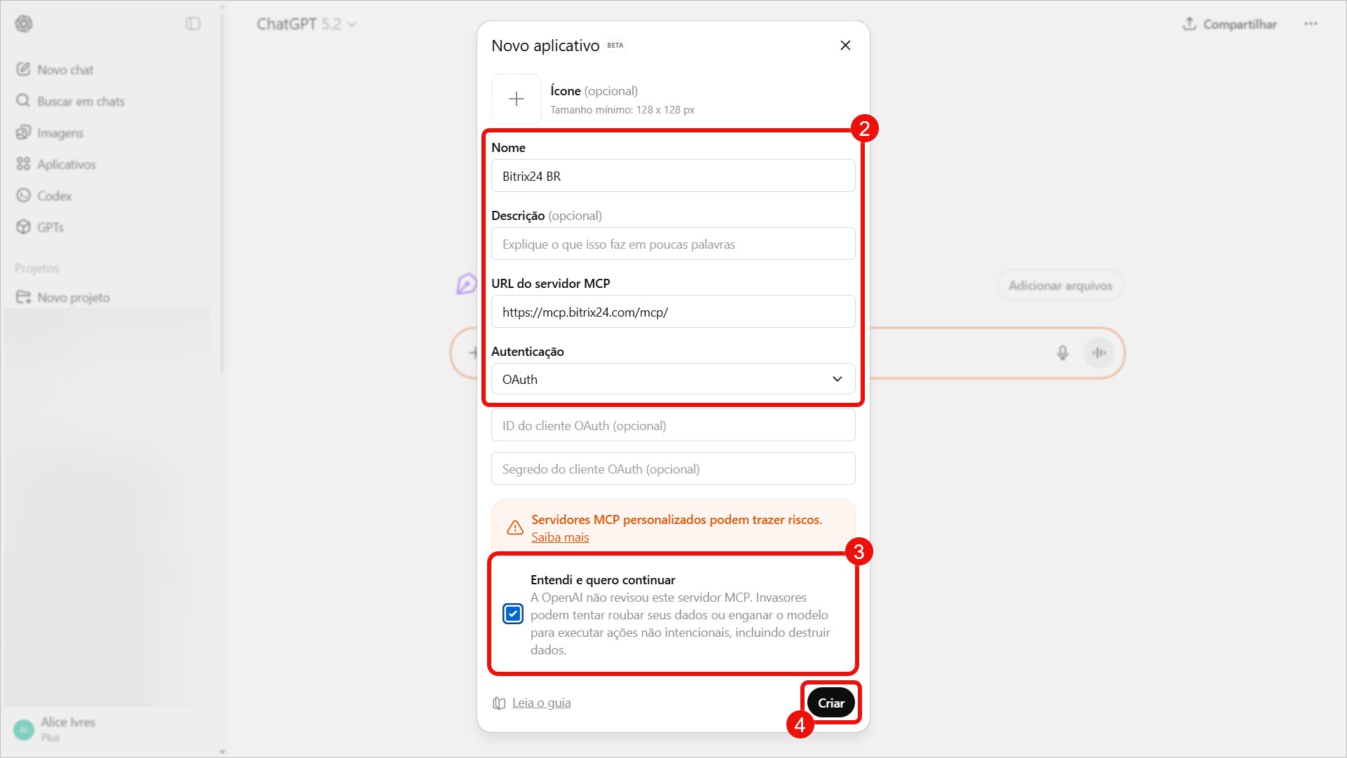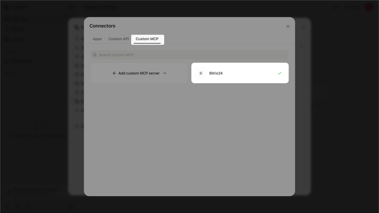 - Com o Servidor MCP, você pode conectar o Bitrix24 a sistemas de IA externos que já usa no seu trabalho diário, como o ChatGPT. Isso é especialmente útil se você quiser gerenciar tarefas diretamente do chat com seu assistente virtual.