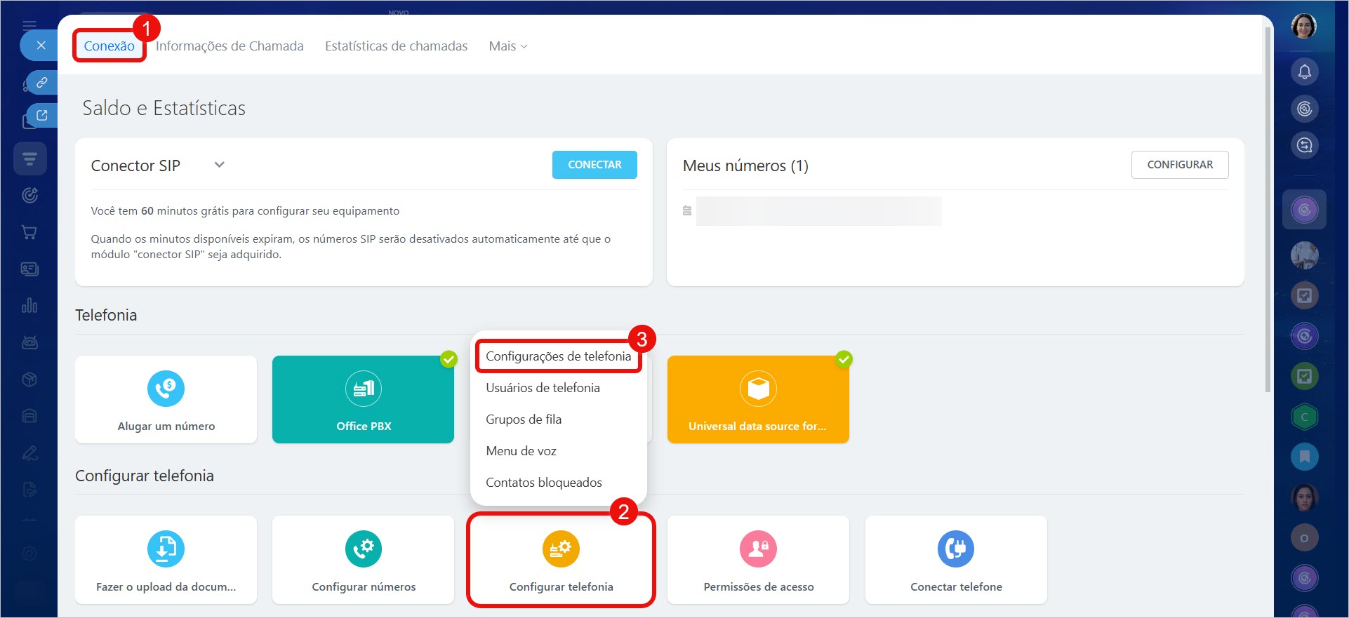 No Bitrix24, você tem três opções para conectar a telefonia.