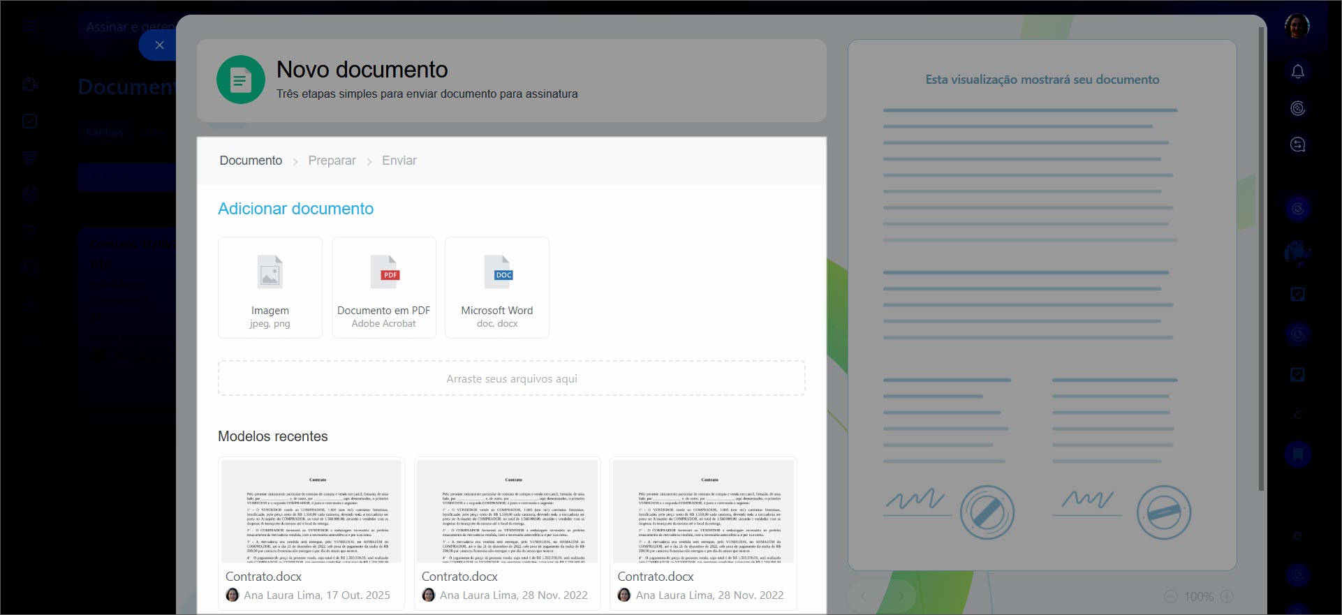 Após a verificação, você poderá enviar o documento para a parte contratada.