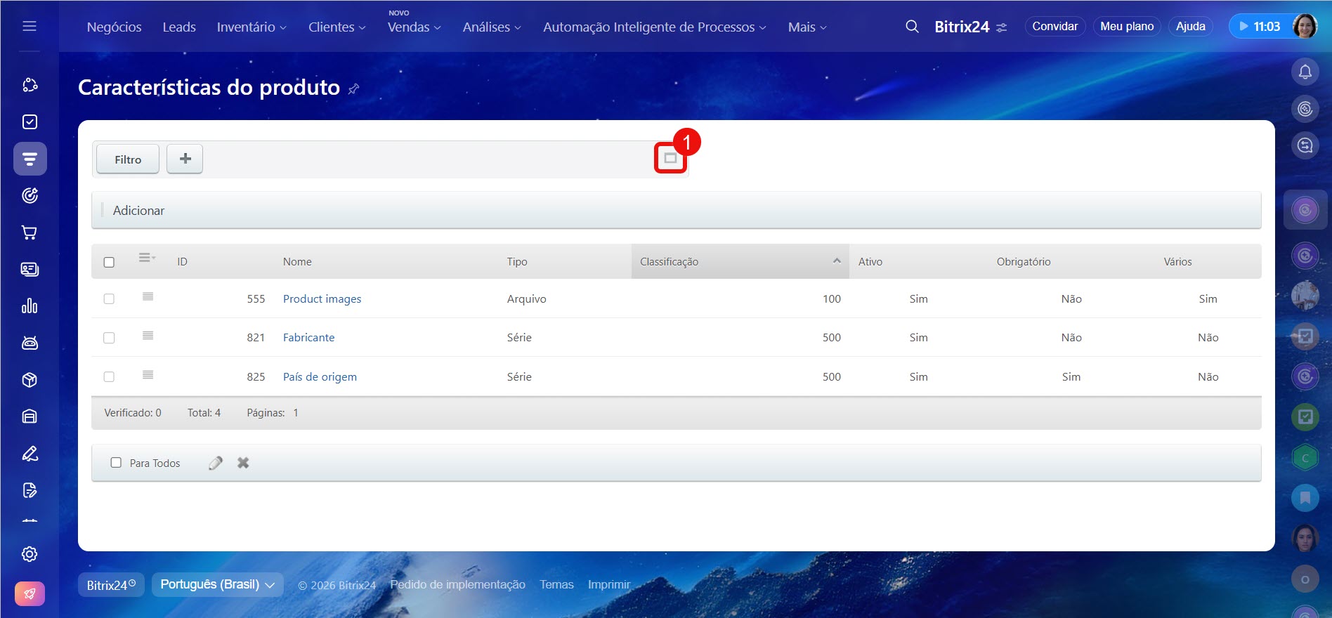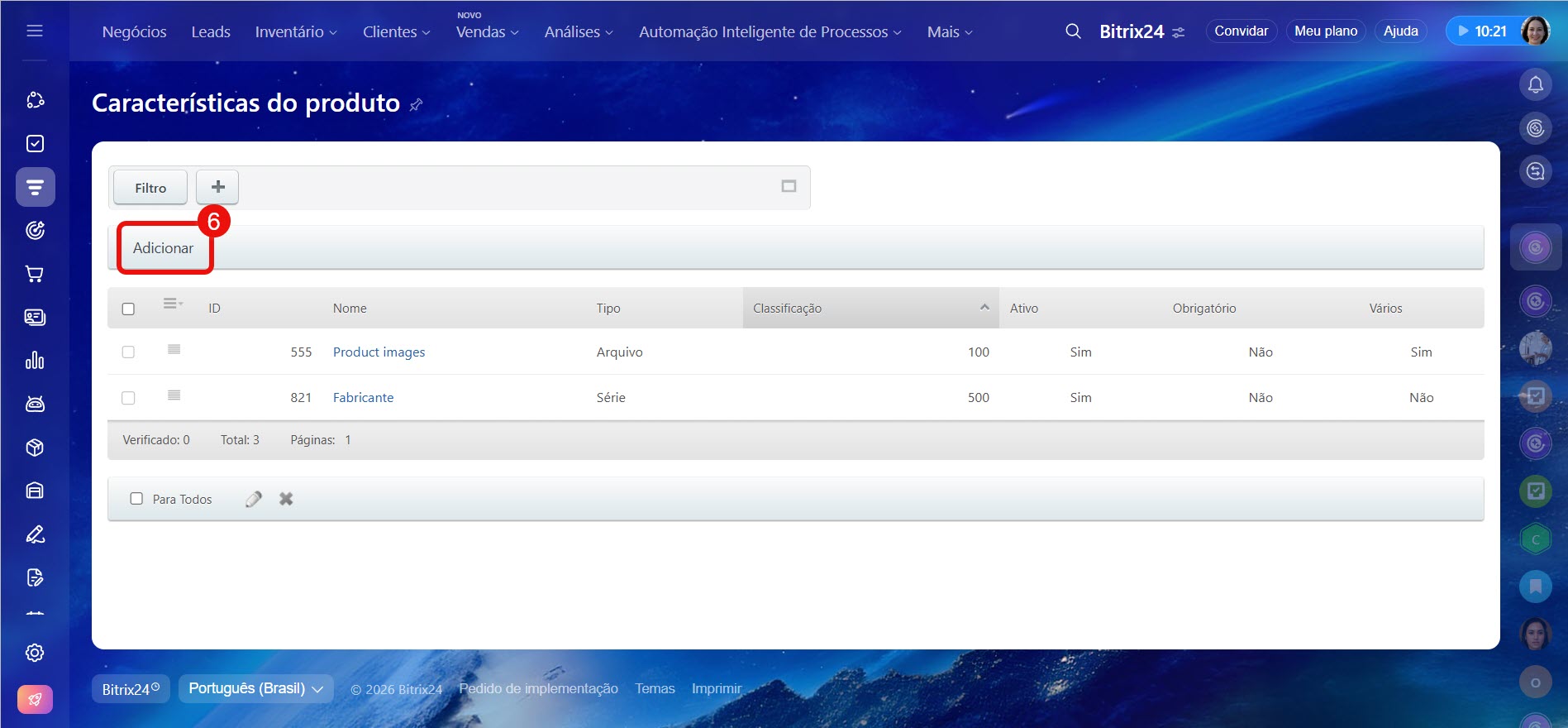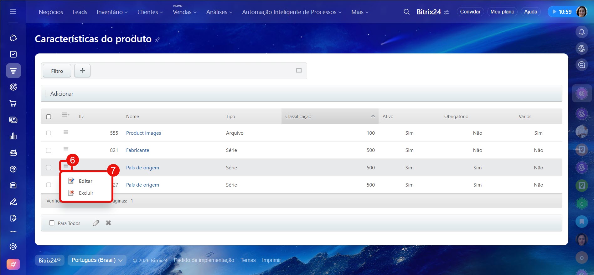 Administradores do Bitrix24 e colaboradores com a permissão Permitir alterar configurações do CRM podem adicionar e alterar propriedades dos produtos.