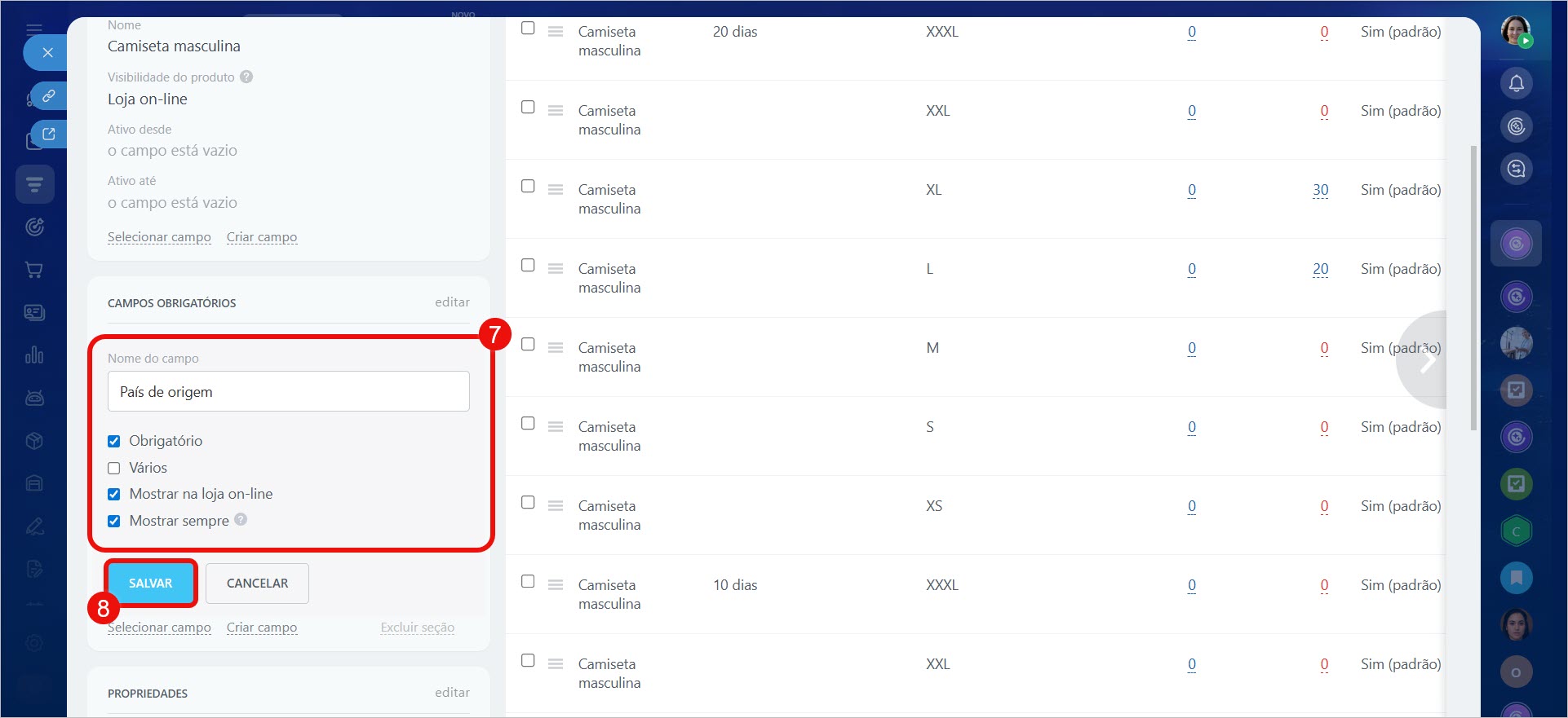 • Mostrar na loja on-line – permite buscar produtos e serviços pelo valor desta propriedade na loja on-line do Bitrix24.