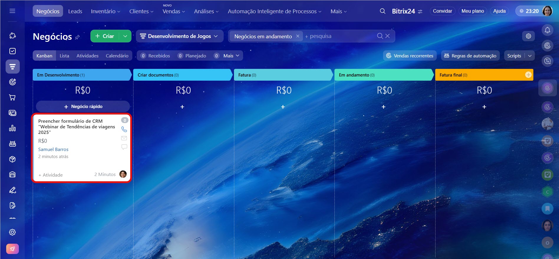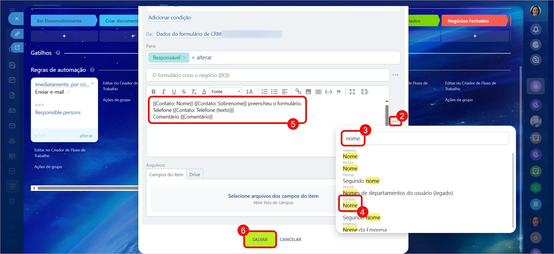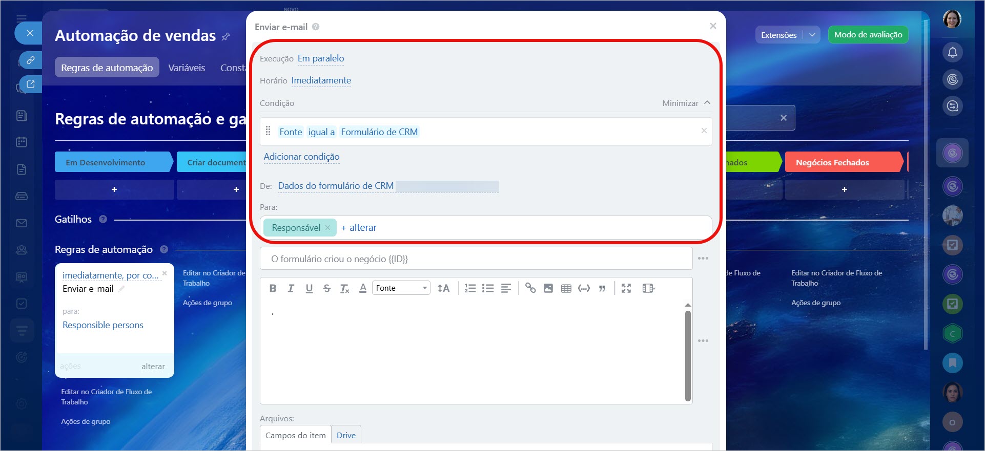 Regras de automação no CRM