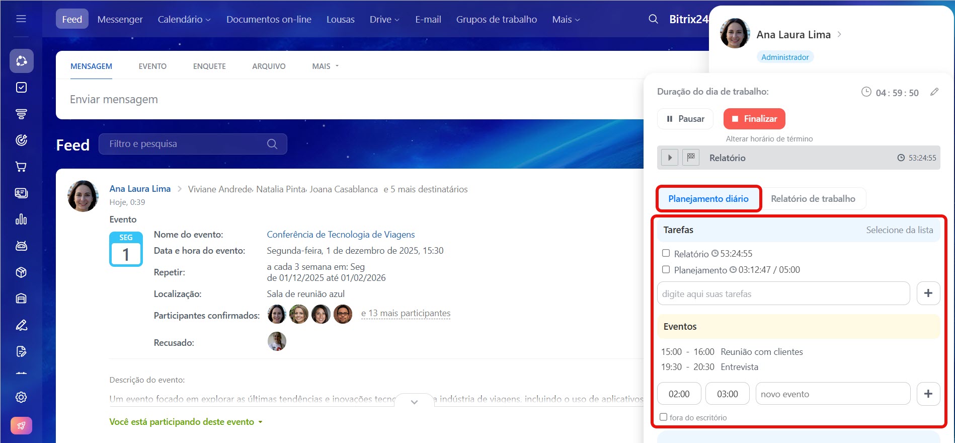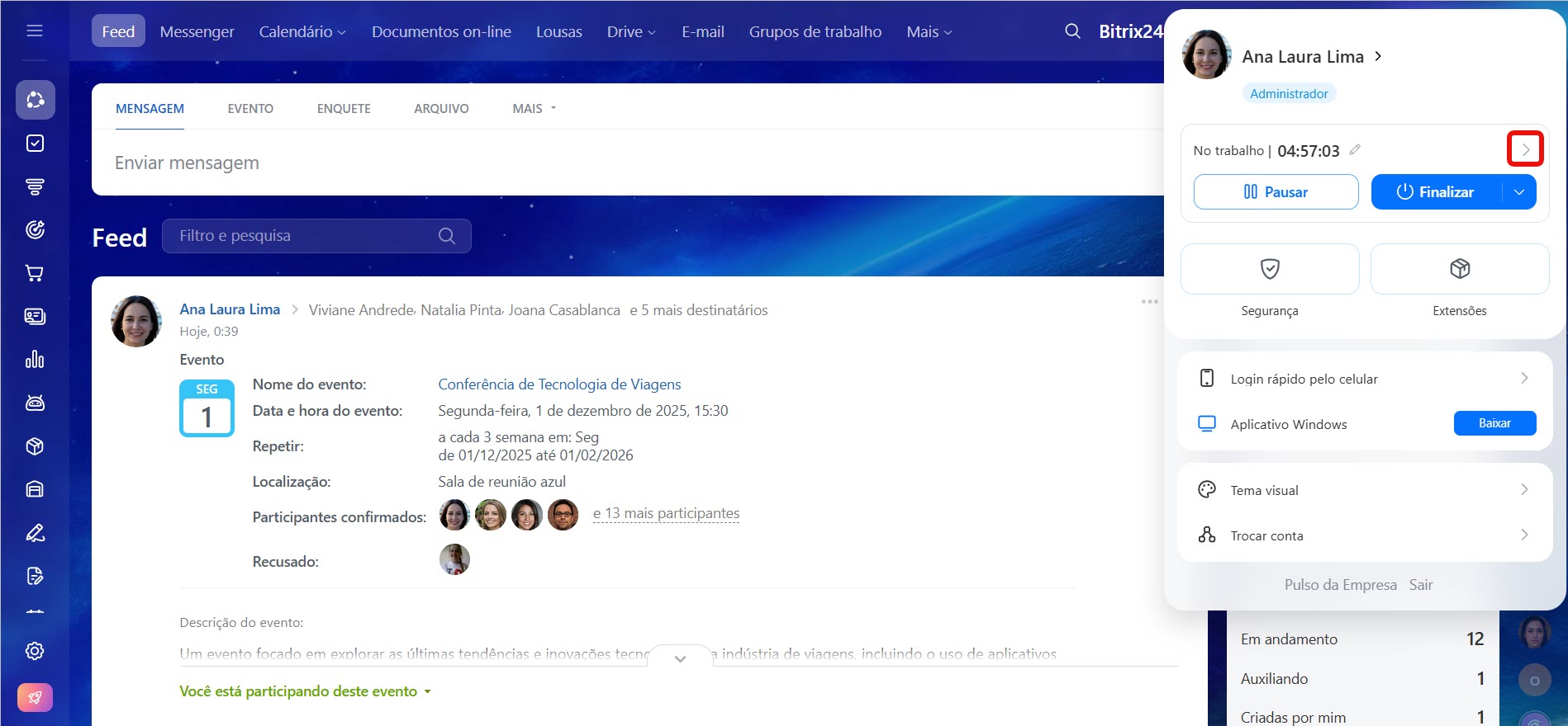 Como administrar o seu horário de trabalho no Bitrix24