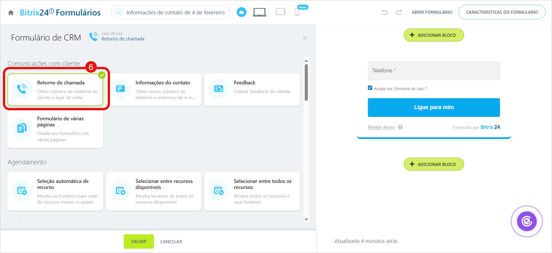 Um Formulário de CRM de retorno de chamada é um formulário onde o cliente deixa seu número de telefone para que um atendente entre em contato. Ele ajuda a não perder solicitações e a responder rapidamente aos pedidos dos clientes.