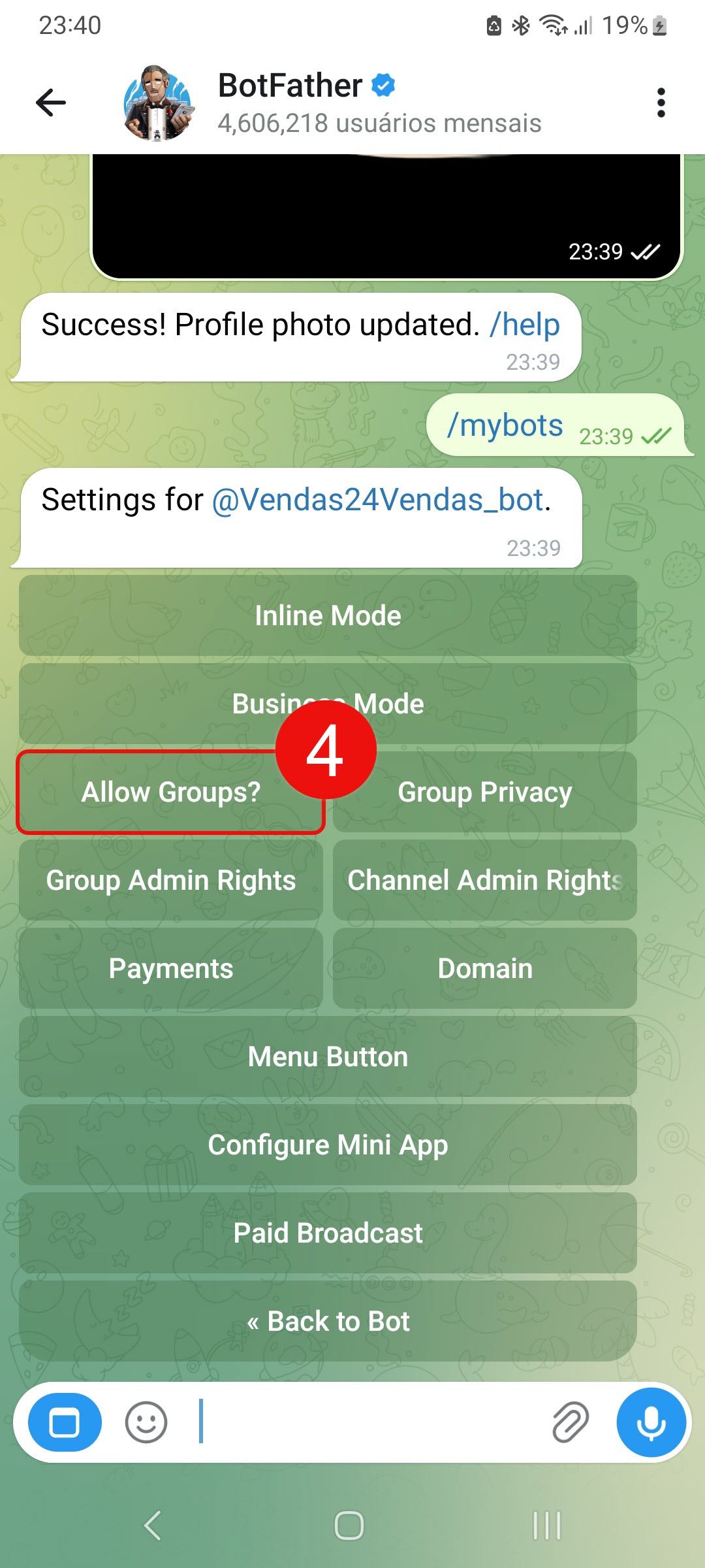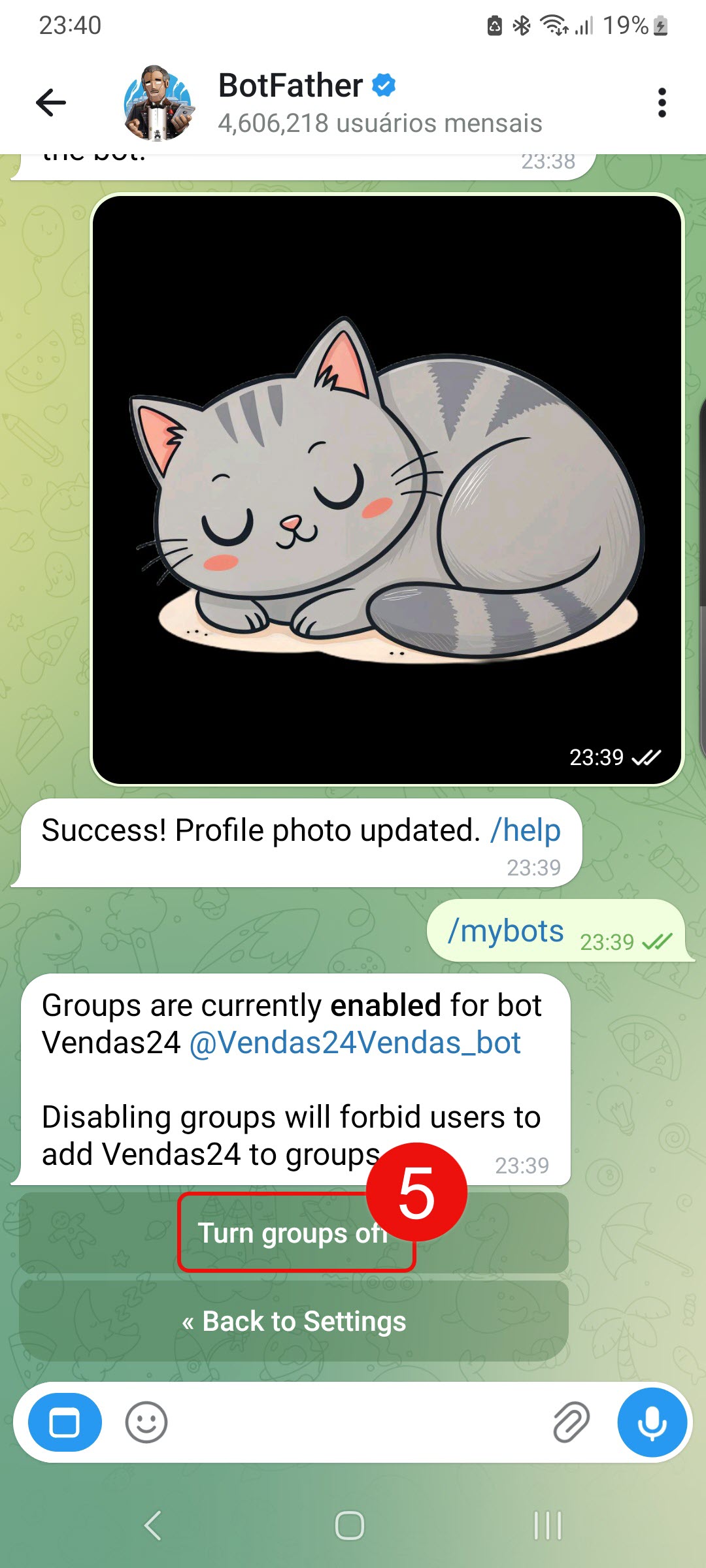 5. Clique em Turn groups off. Agora, o bot não poderá mais ser adicionado a grupos.