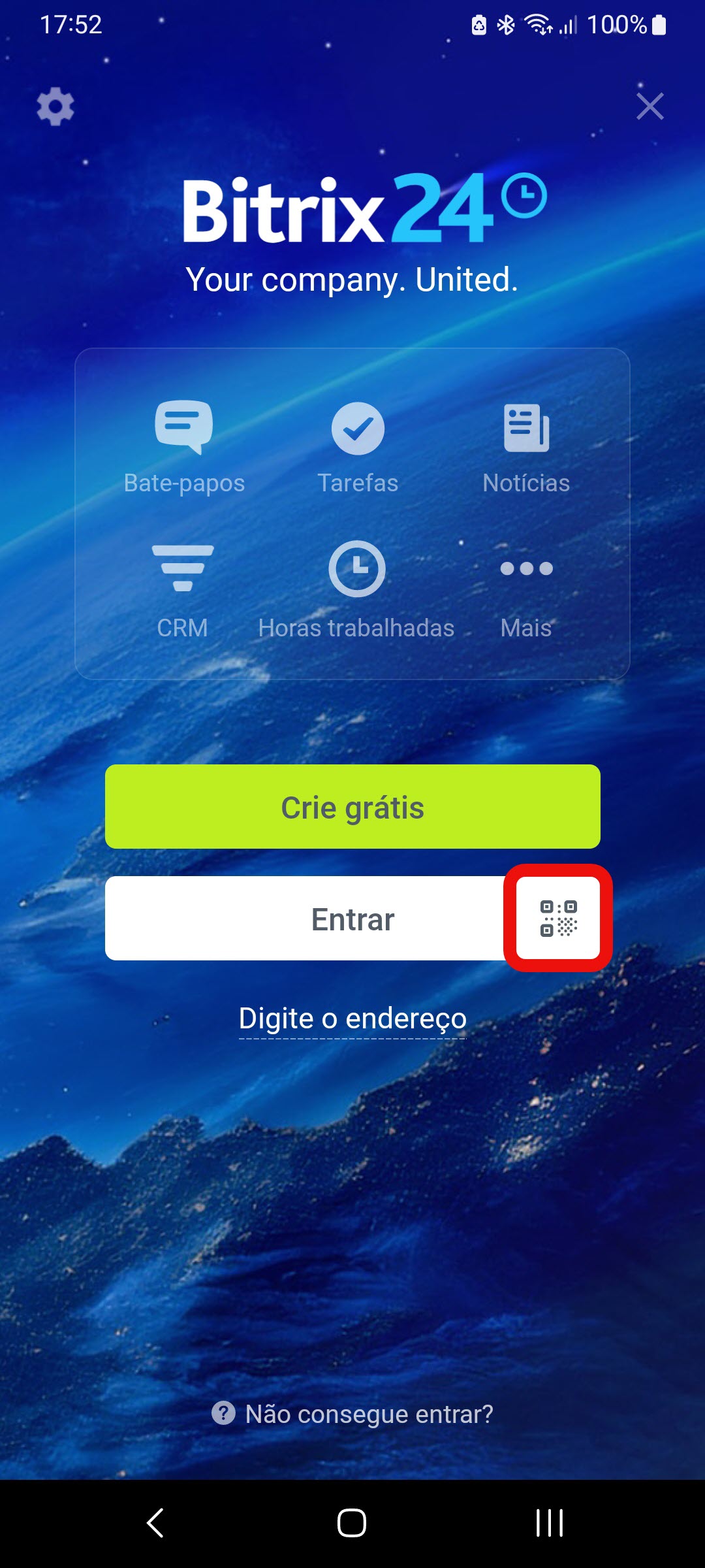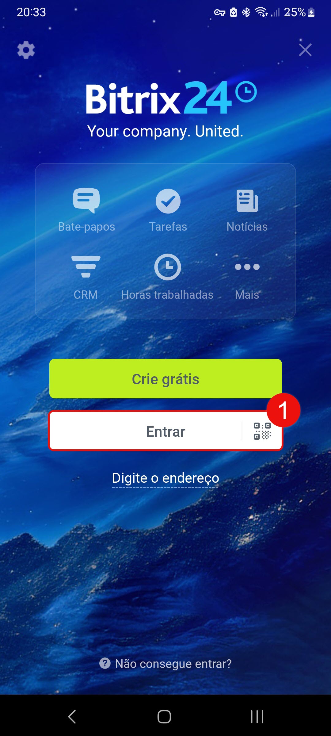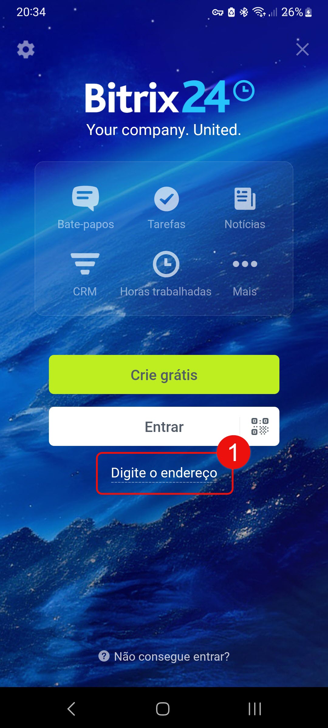 Abra o aplicativo e escolha como acessar o Bitrix24: