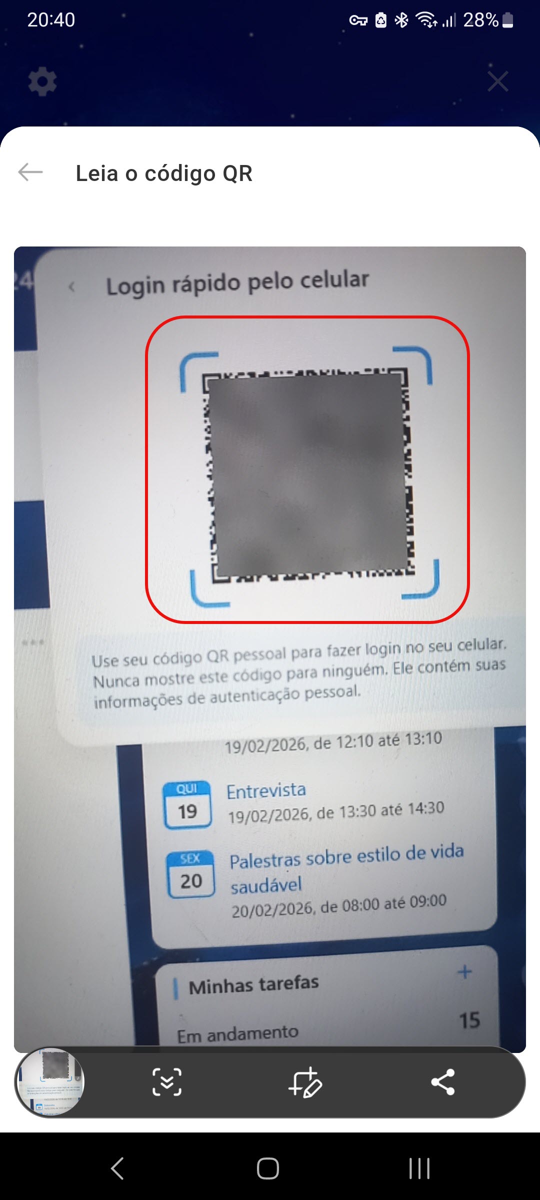4. Aponte a câmera do seu celular para o código QR na tela do computador. Você será conectado ao Bitrix24.