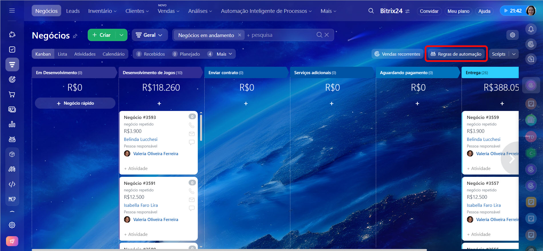 Regras de automação no CRM