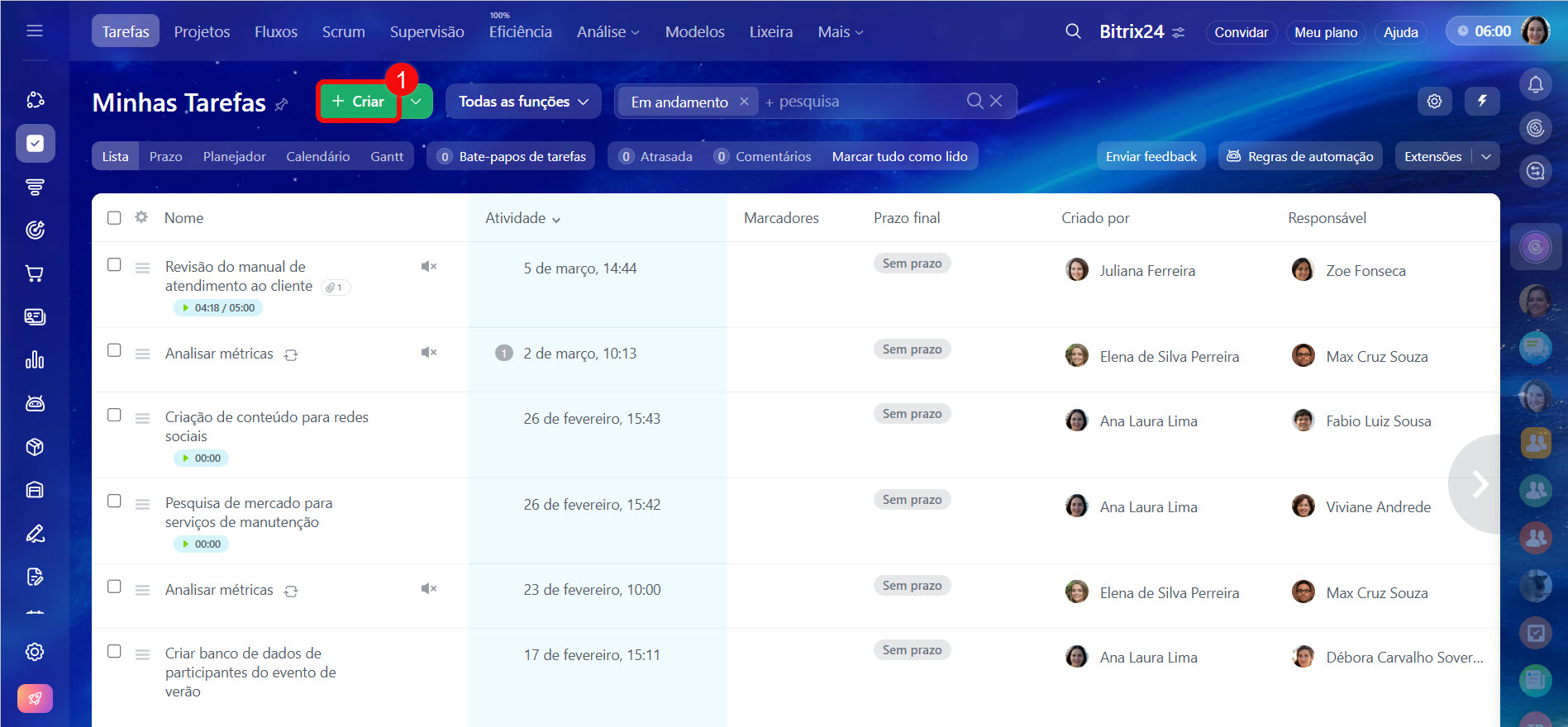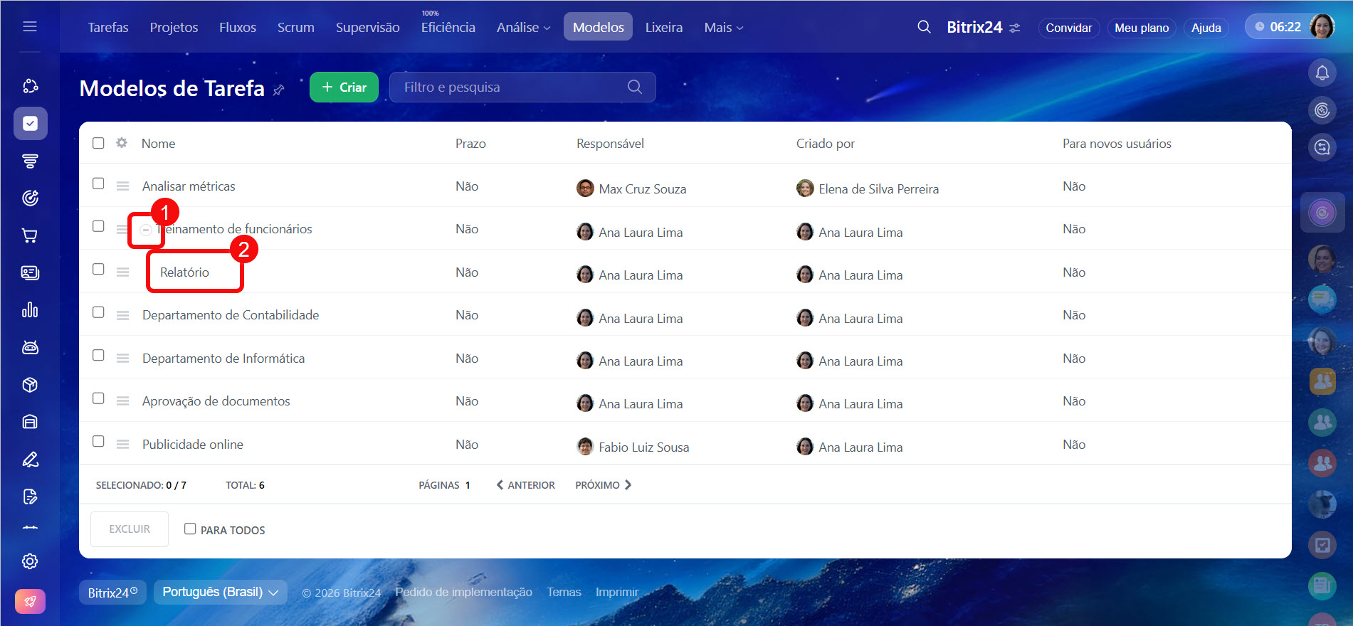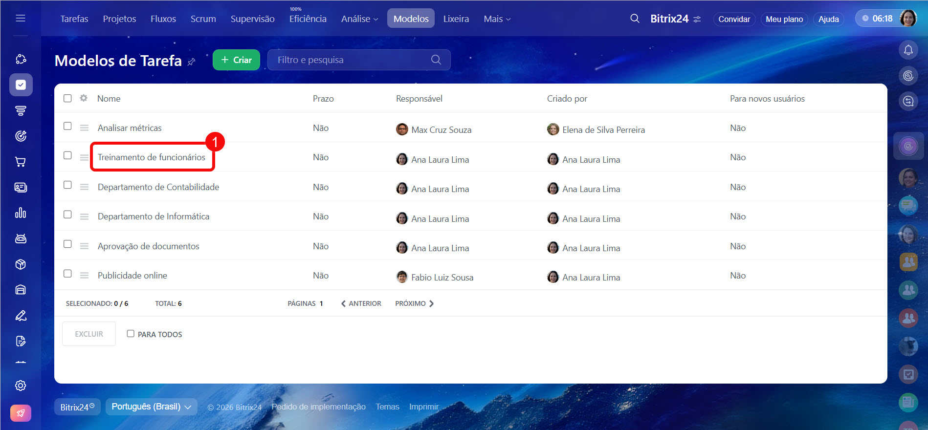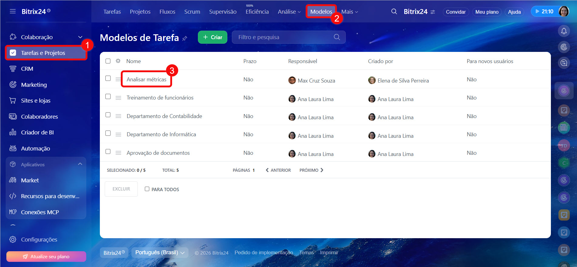 - Você pode criar um modelo na seção Tarefas e Projetos > Mais > Modelos > Criar.
