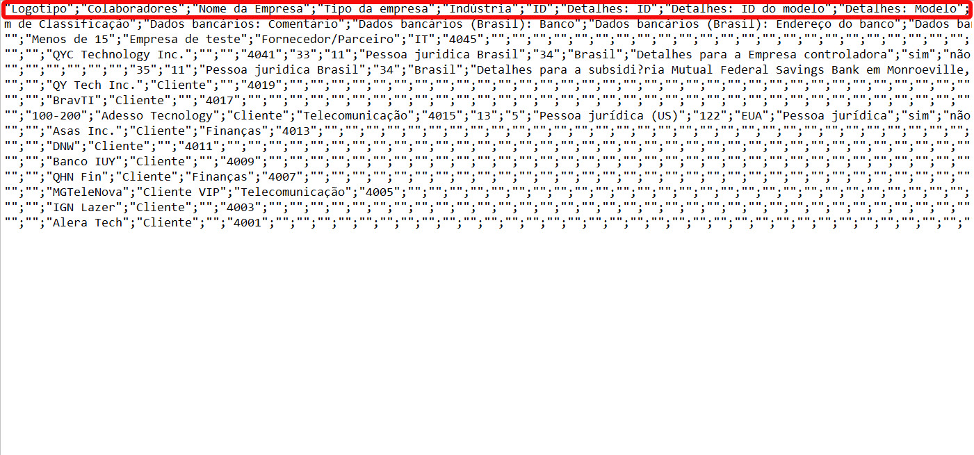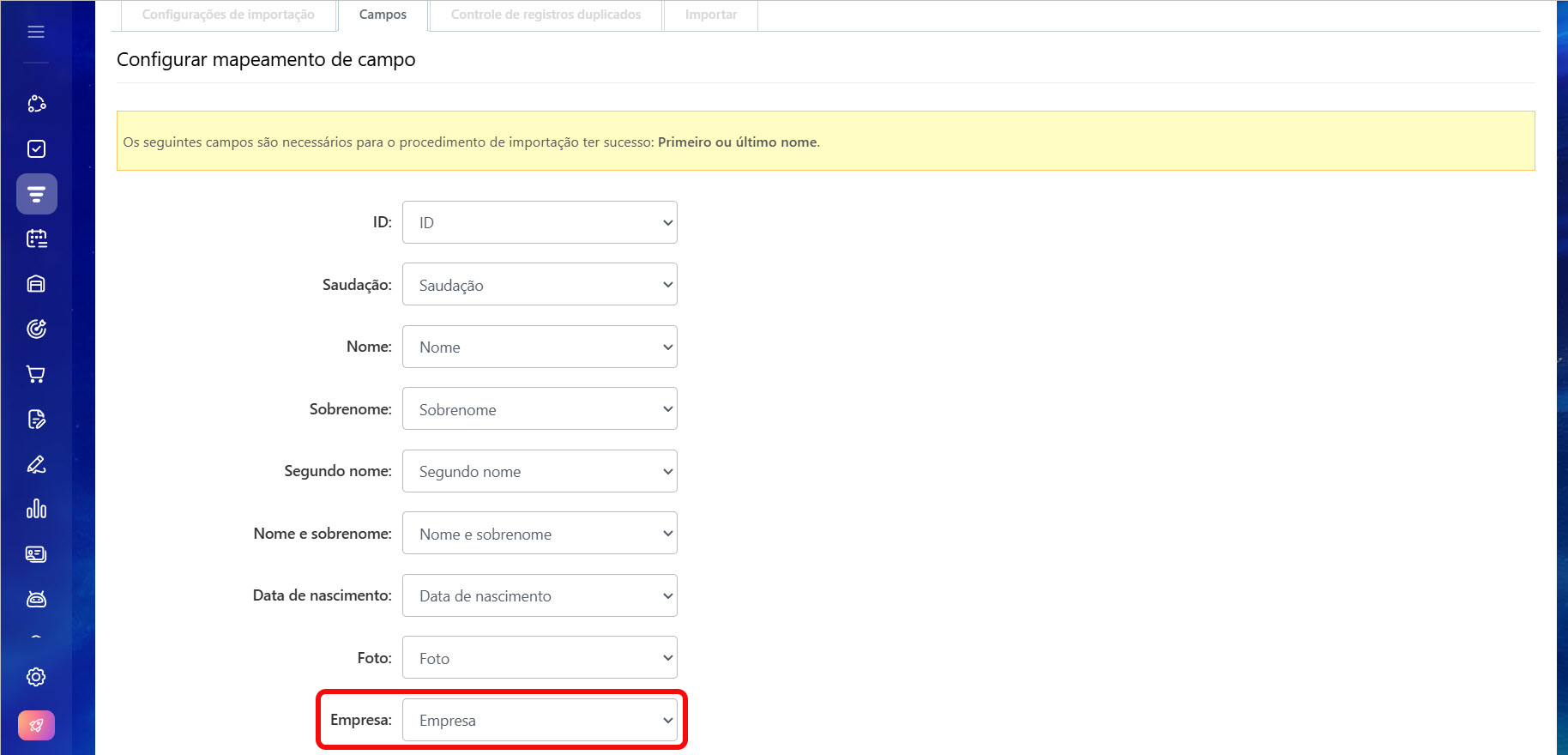 - Verifique se o campo Empresa no arquivo corresponde ao mesmo campo no cartão do CRM.