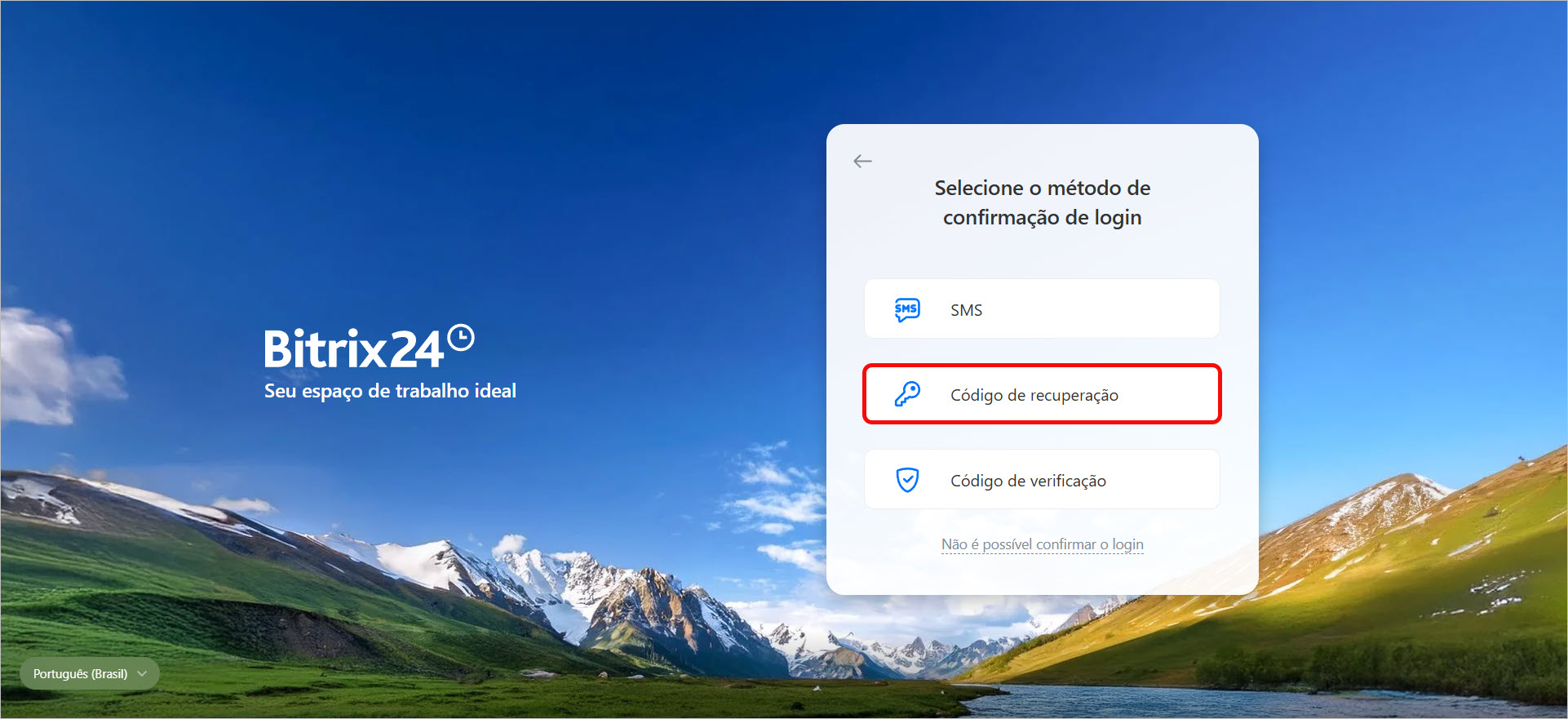 Se você ativou a nova autenticação de dois fatores, o acesso ao Bitrix24 deve ser confirmado pelo aplicativo móvel. Se você perdeu o telefone, trocou de dispositivo ou não consegue abrir o aplicativo, é possível recuperar o acesso de outras maneiras.