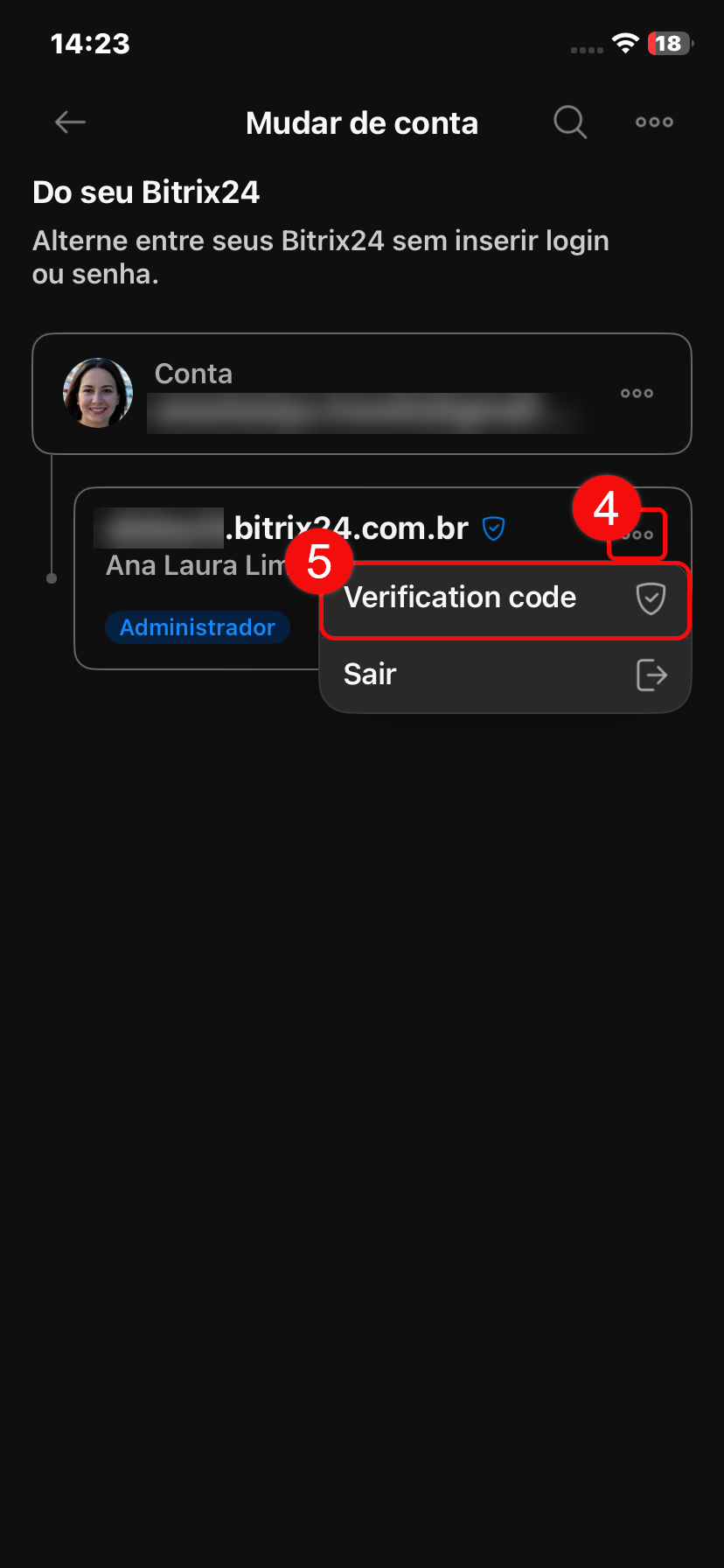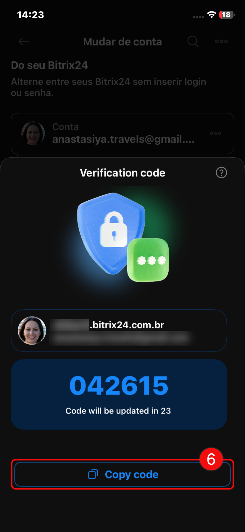 1. Clique em Código do aplicativo. O Bitrix24 gerará um código e o enviará para o app no seu celular.