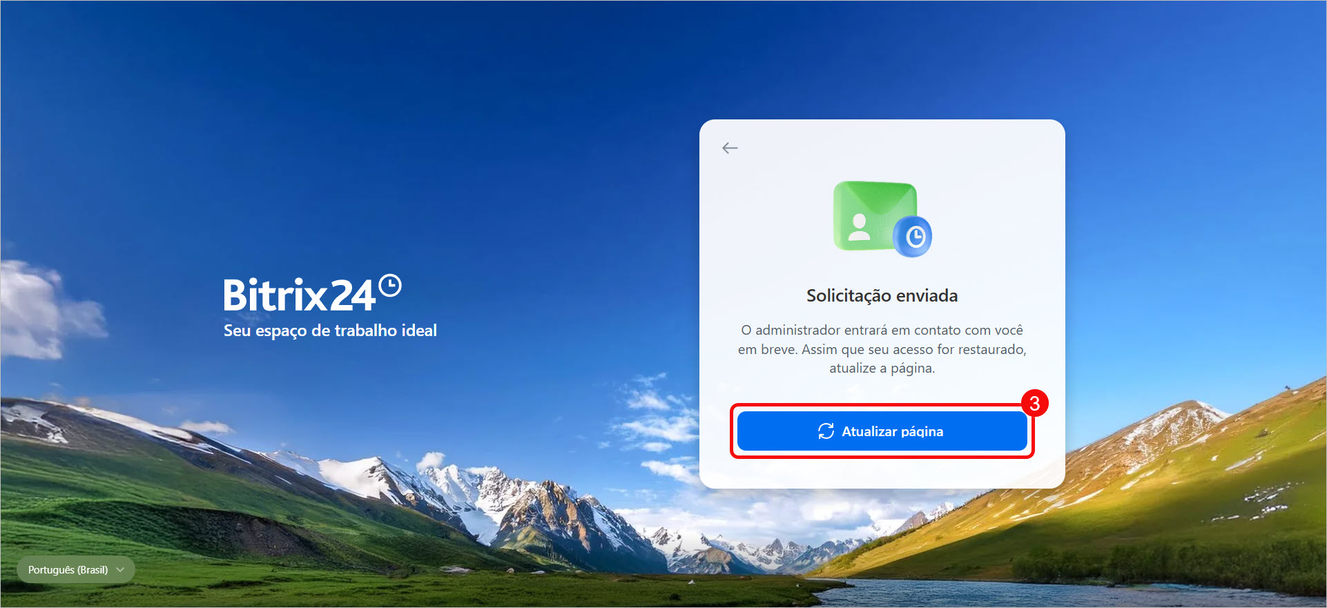 3. Aguarde até que o administrador desative a autenticação. Atualize a página de login. Depois disso, você será redirecionado automaticamente para o Bitrix24.