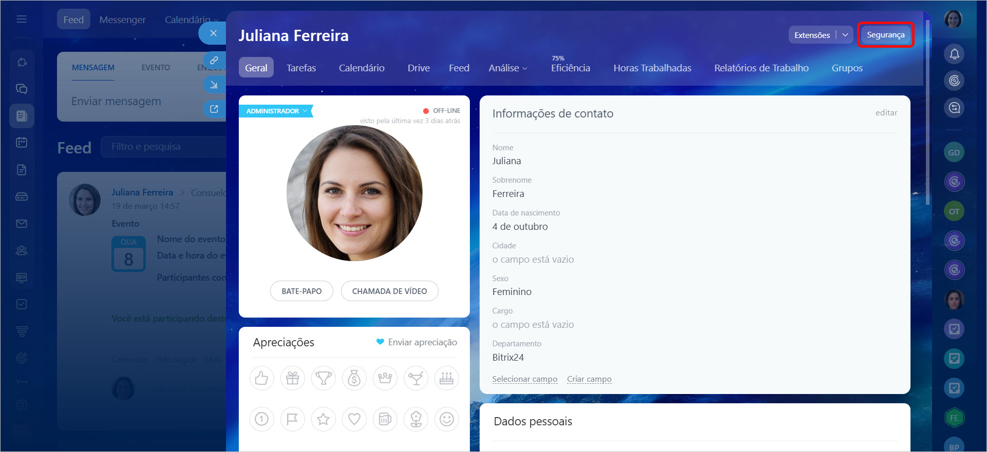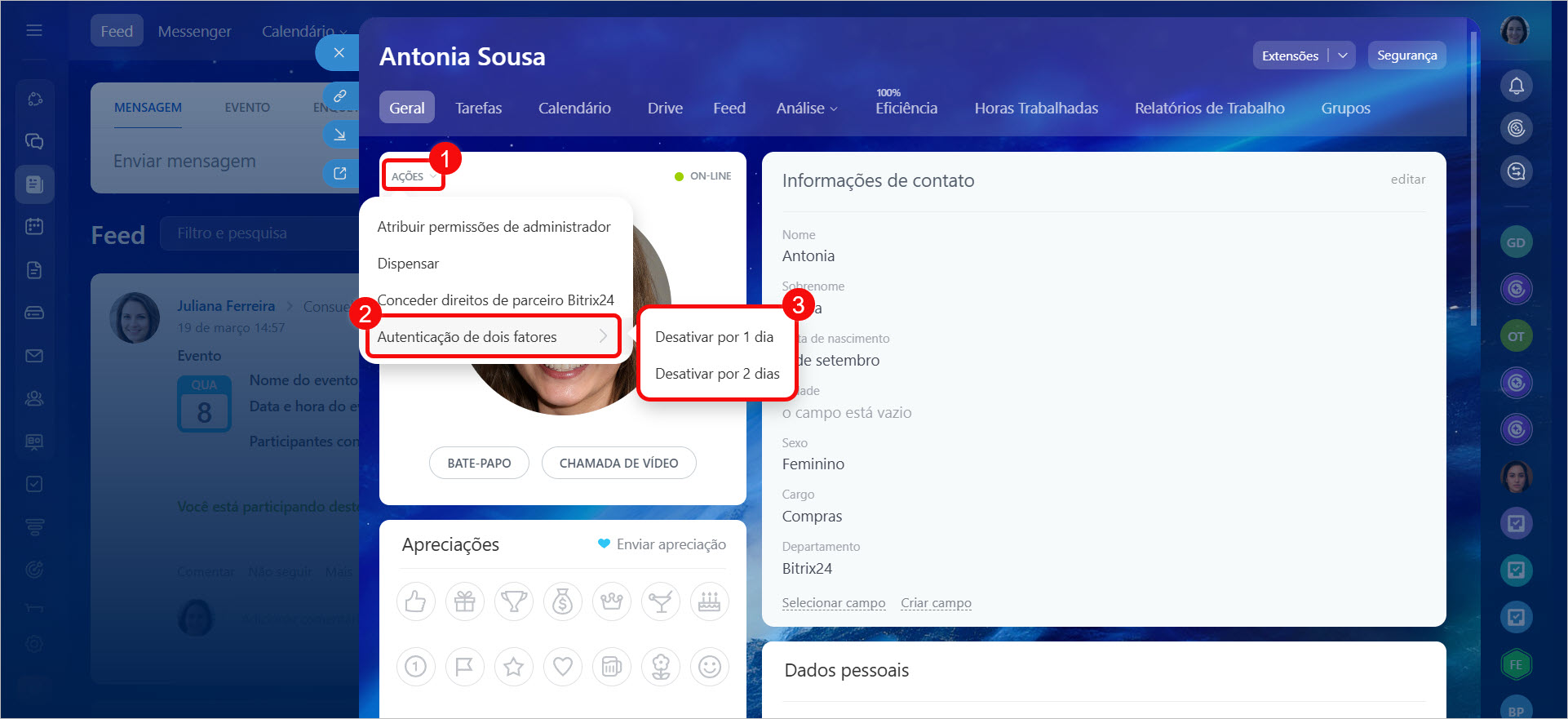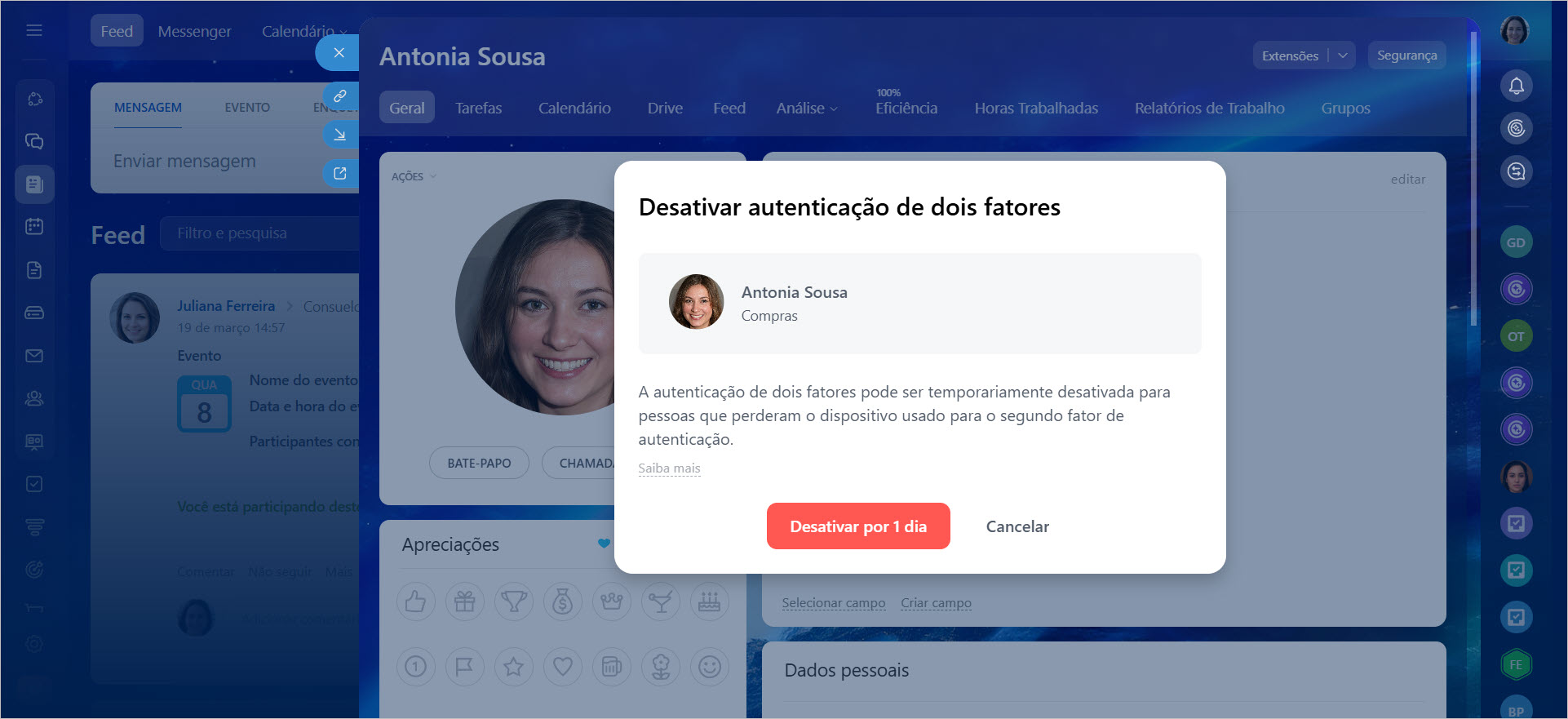 Com a autenticação desativada, o colaborador poderá acessar o Bitrix24 e configurar novamente a autenticação de dois fatores com um novo dispositivo.