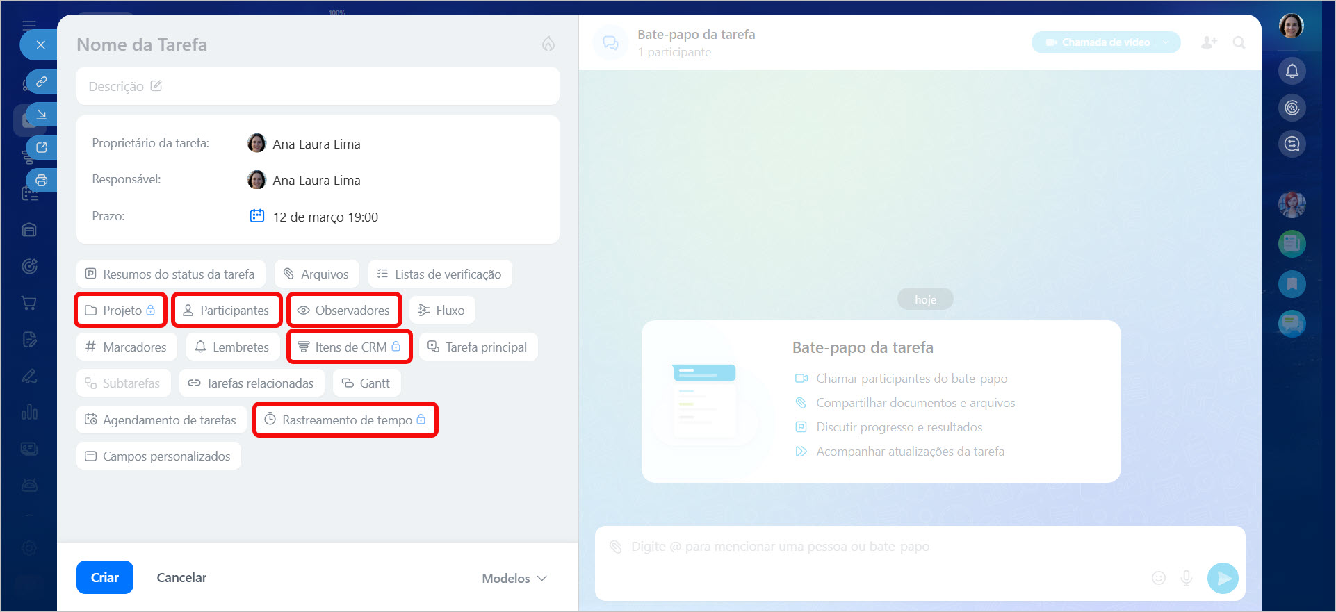 - Adicionar participantes ou observadores.