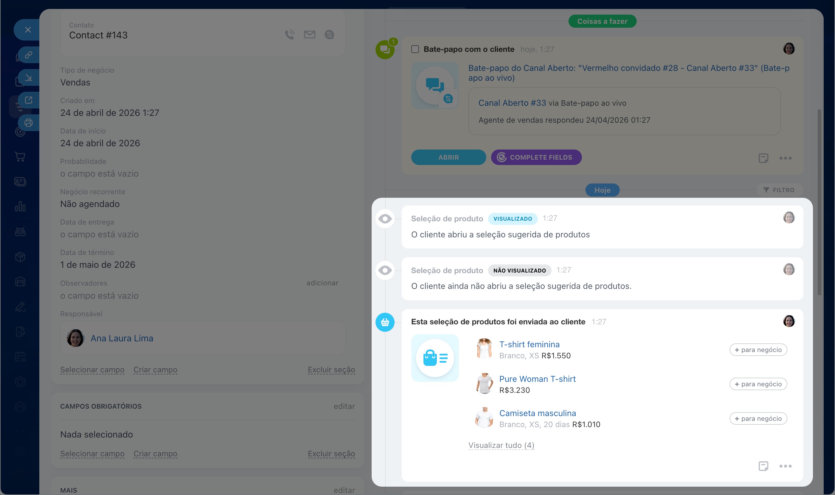 No negócio, você pode ver quando o cliente abriu a seleção. O vendedor sabe que a oferta foi visualizada e pode contatar o cliente no momento certo para discutir os detalhes.