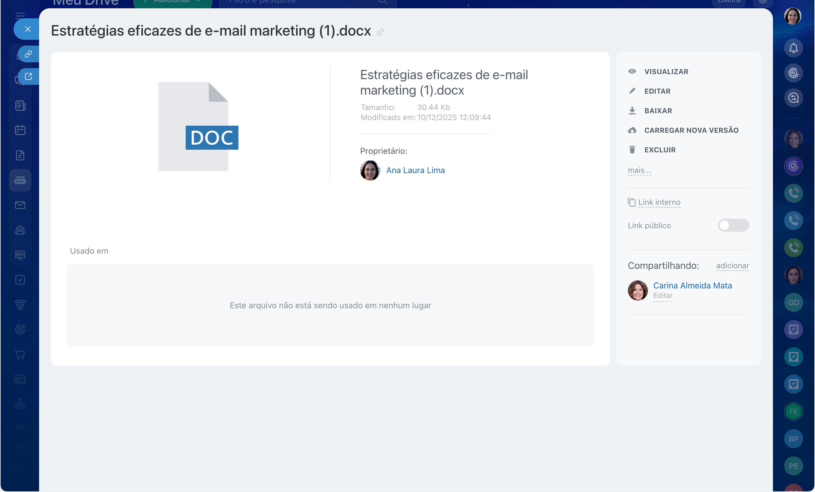 - saber onde o arquivo está sendo usado — por exemplo, em tarefas ou outros elementos,