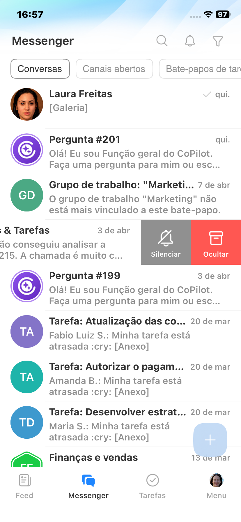 • Silenciar: desativar notificações de novas mensagens se as informações do chat não exigirem reação imediata.