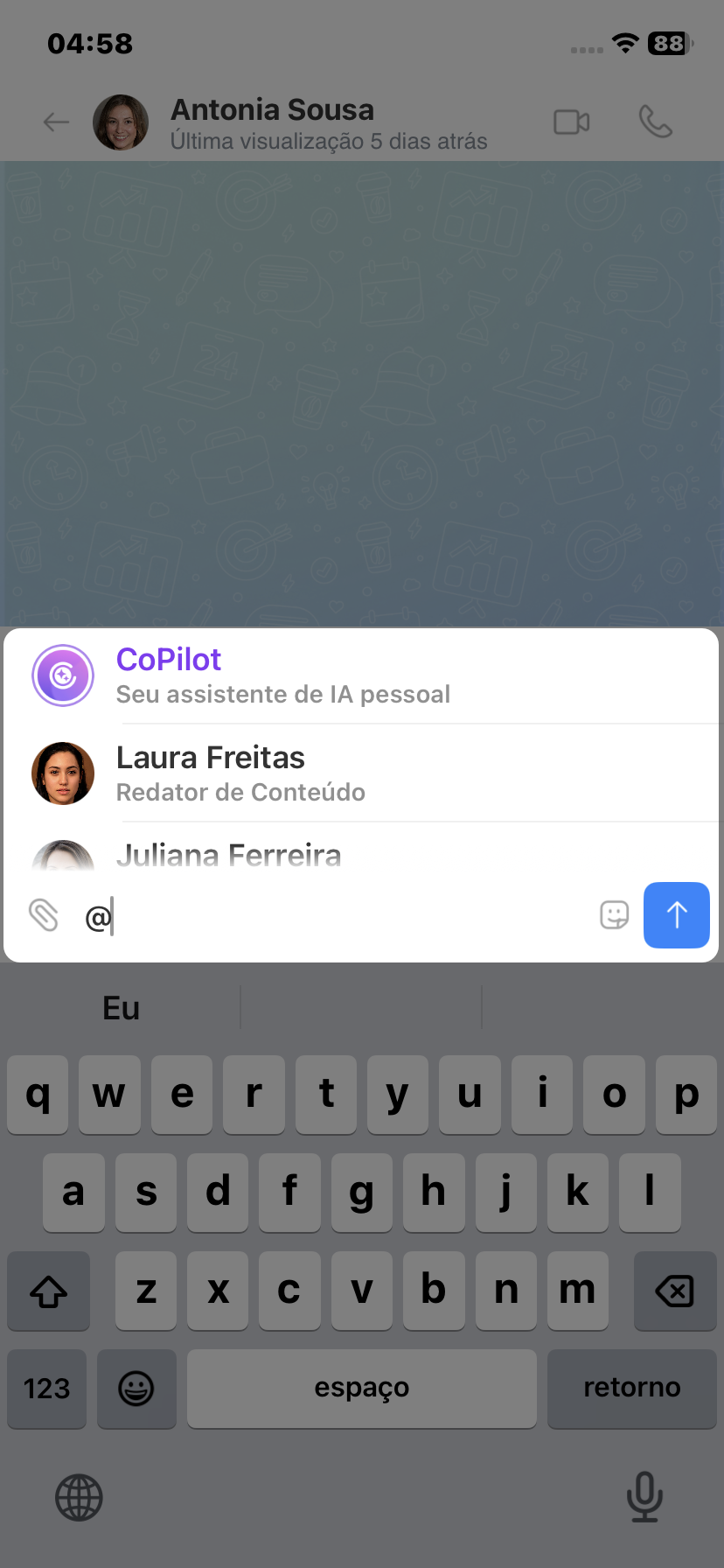 Você também pode mencionar o CoPilot e fazer uma pergunta diretamente na conversa.