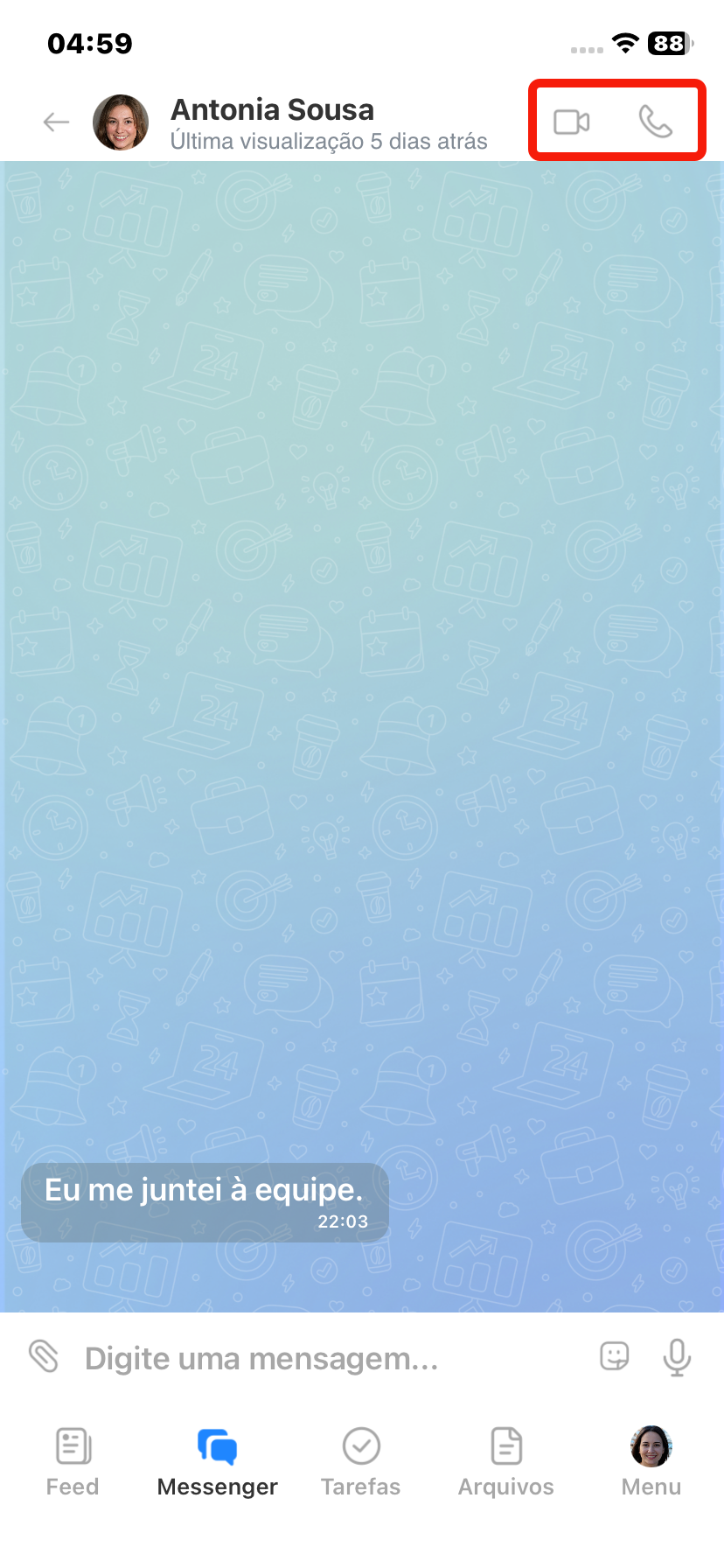 Fazer uma ligação para um colega. Se precisar resolver algo rápido, ligue diretamente do chat.