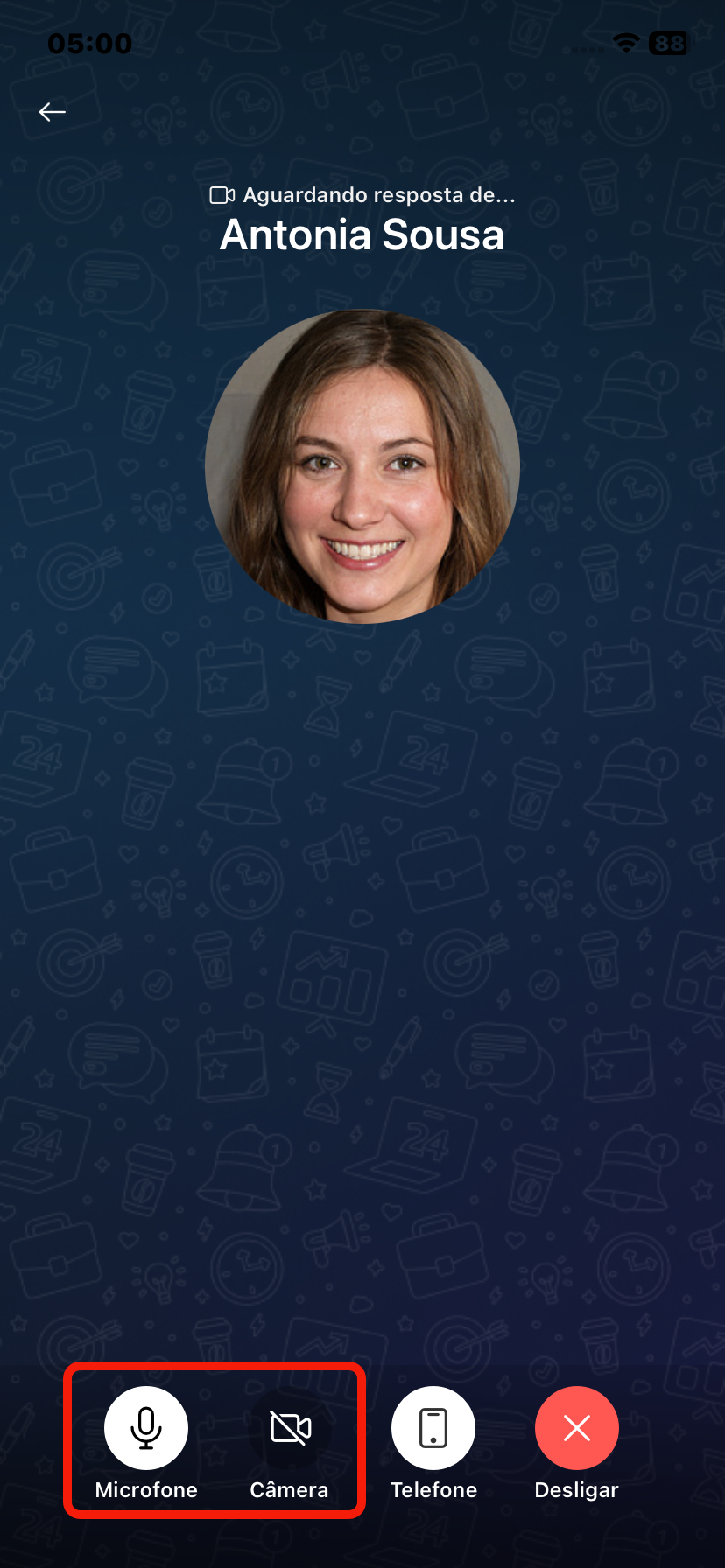 Durante a chamada, você pode ligar ou desligar a câmera e o microfone.