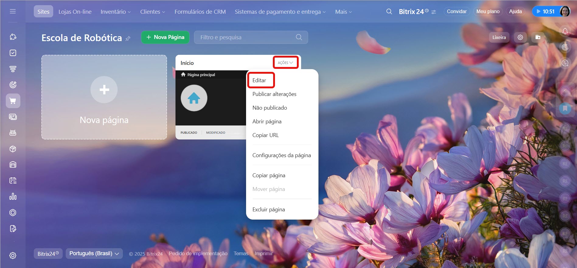 4. Volte para a seção Sites e lojas. Clique em Configurar site no menu.