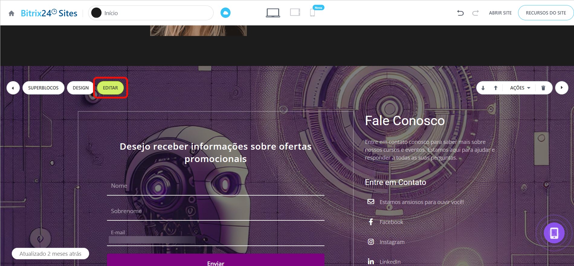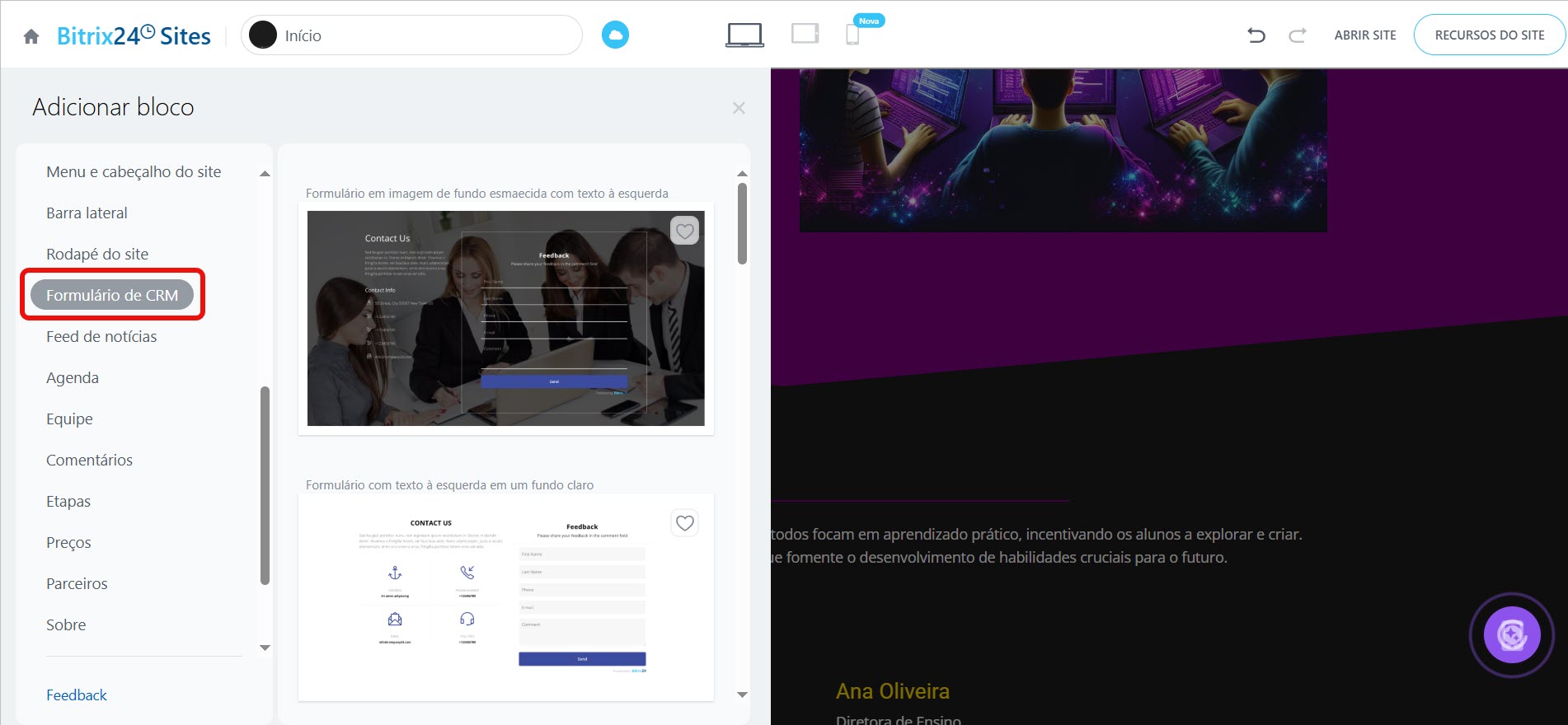 Você pode inserir um formulário de CRM em um site criado no Bitrix24 ou em outro CMS.