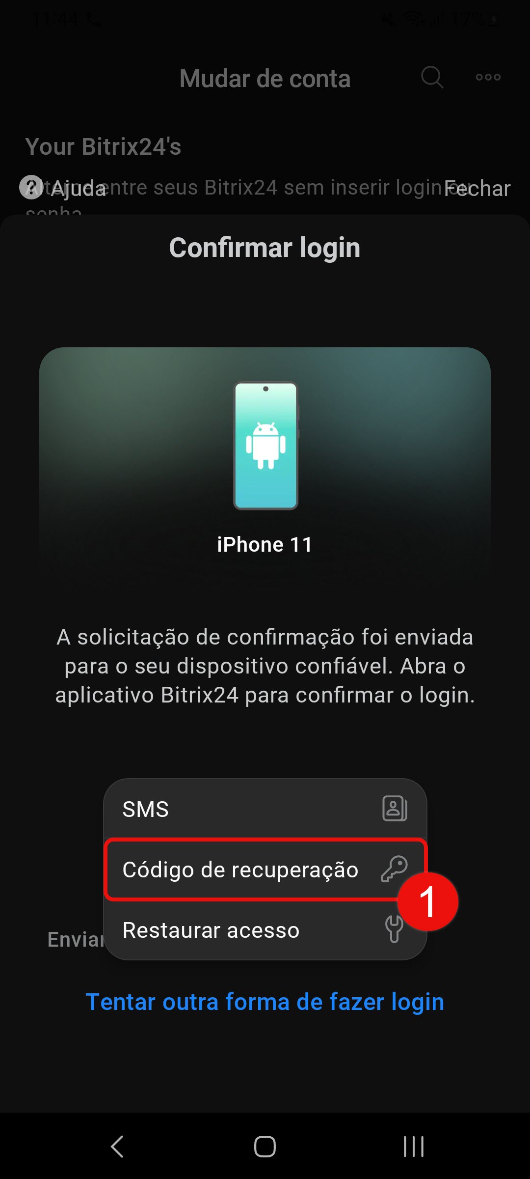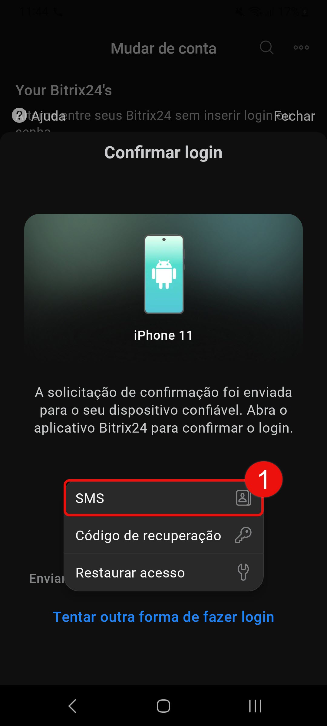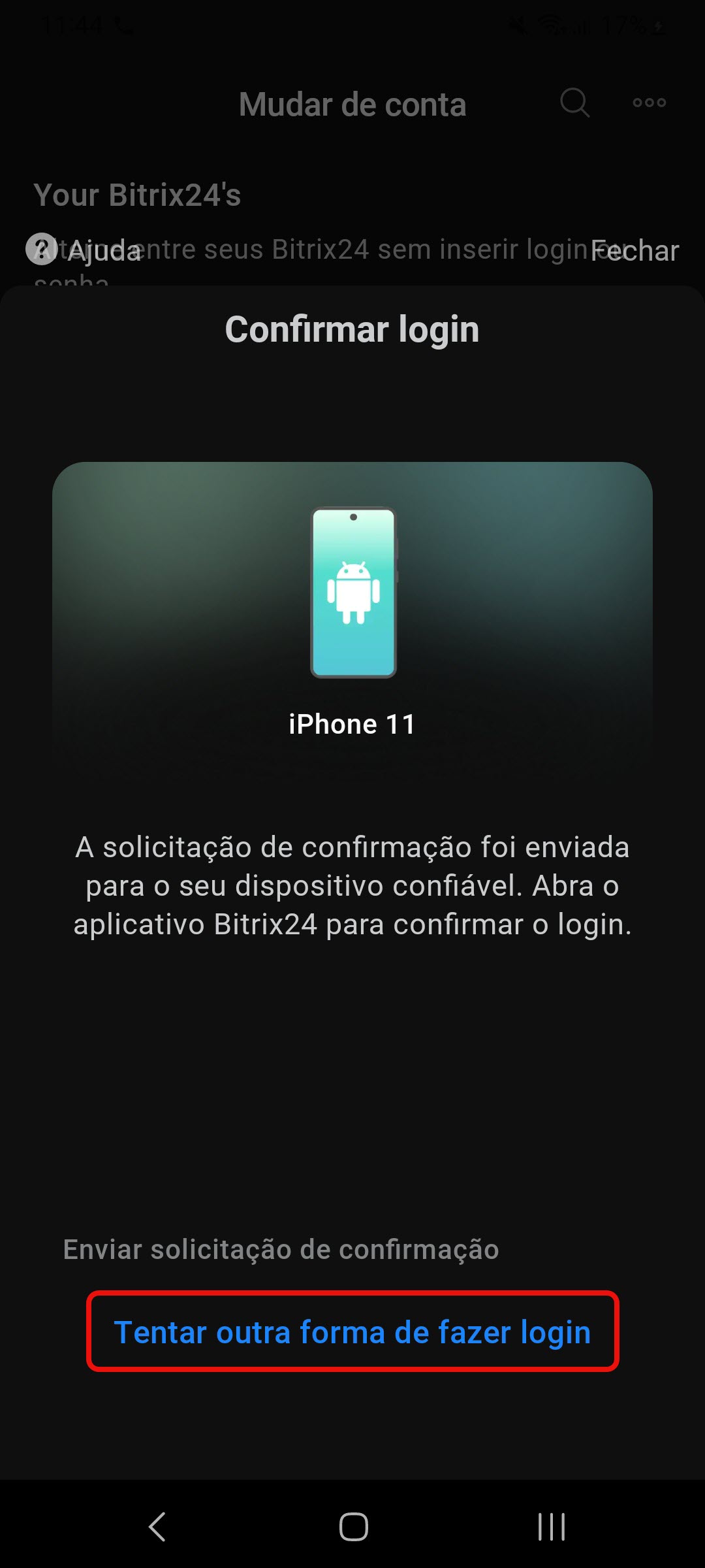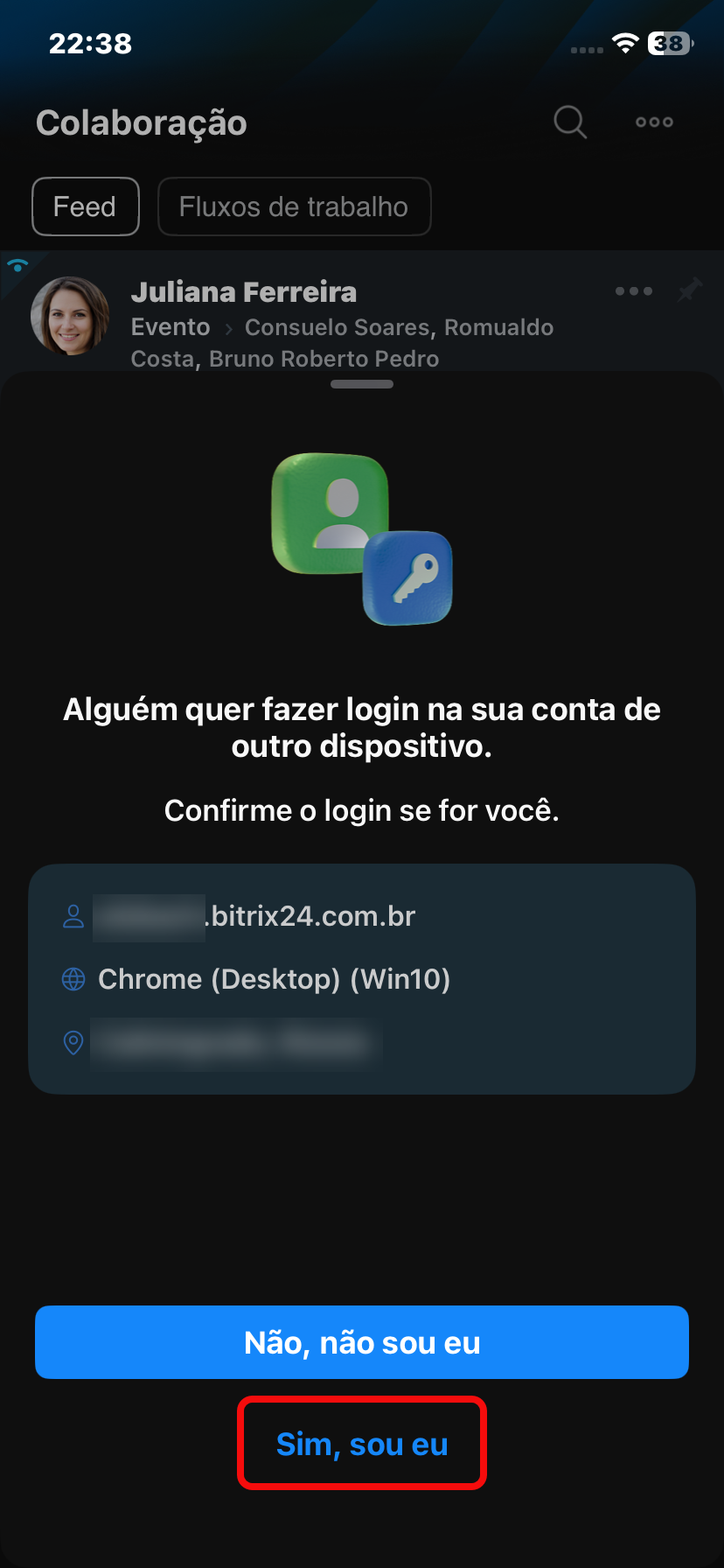 Se você fizer login em outro dispositivo, abra o aplicativo móvel do Bitrix24 no seu dispositivo confiável e toque em Sim, sou eu.